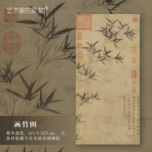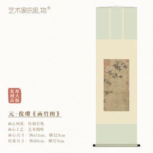 元·倪瓒《画竹图》精裱挂轴/镜芯 特制宣纸画芯 原作超清复刻 简介