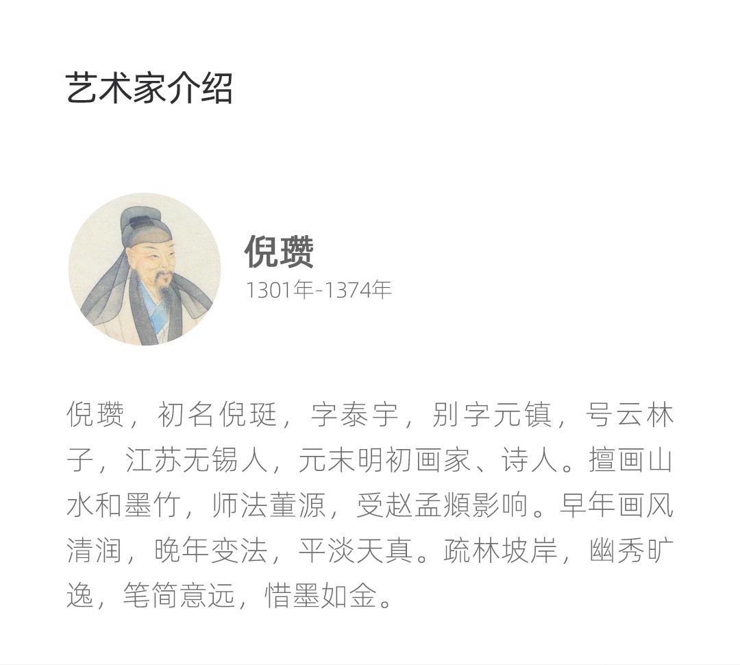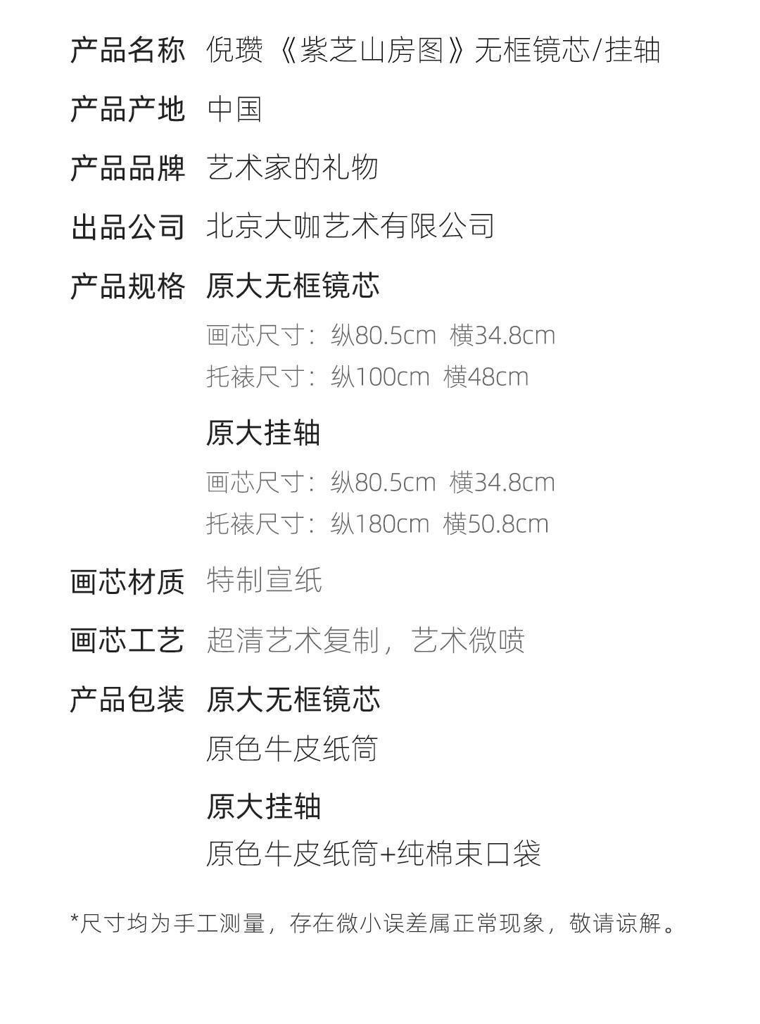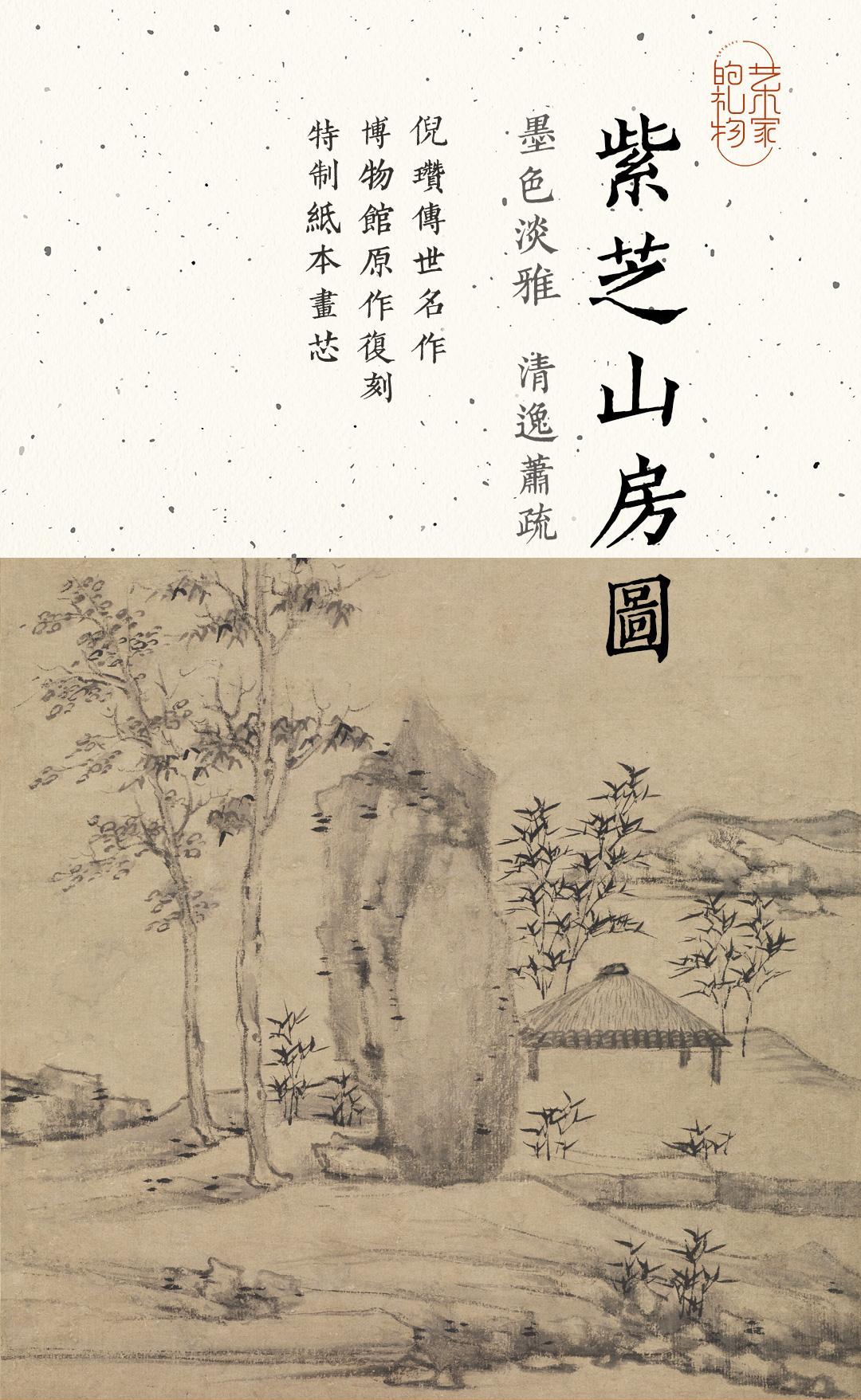 倪瓒《紫芝山房图》镜芯和挂轴,原作超清复刻版画,特制宣纸画芯 简介