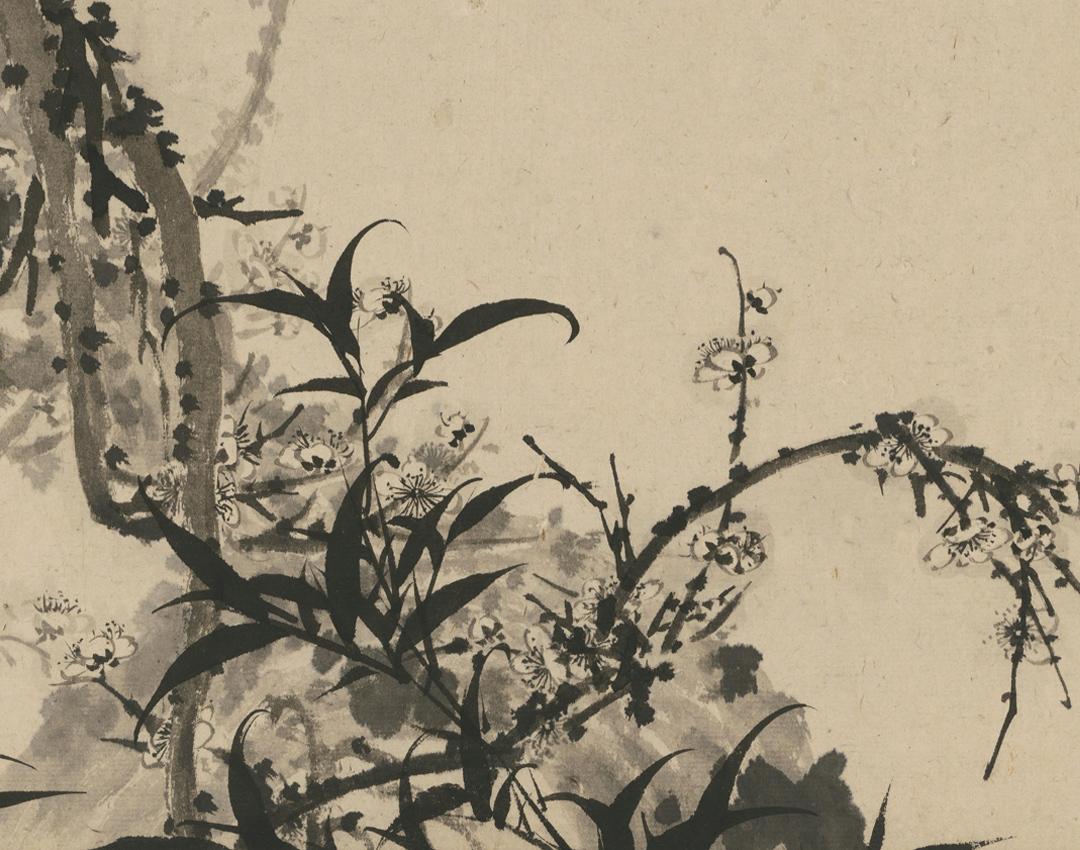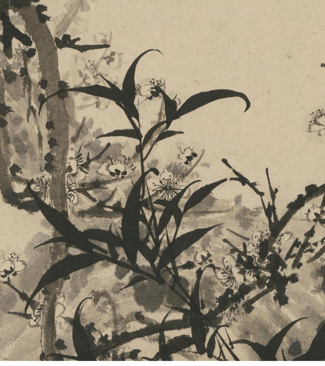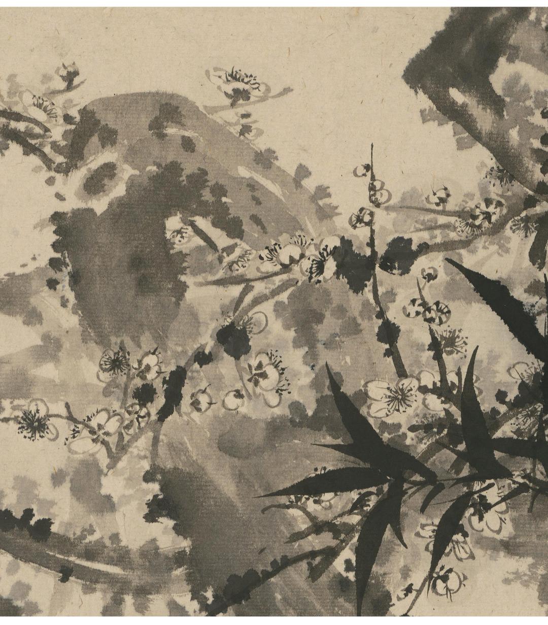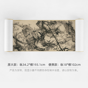 石涛《梅竹图》简版手卷,原作超清复刻,特制宣纸画芯手工托裱
