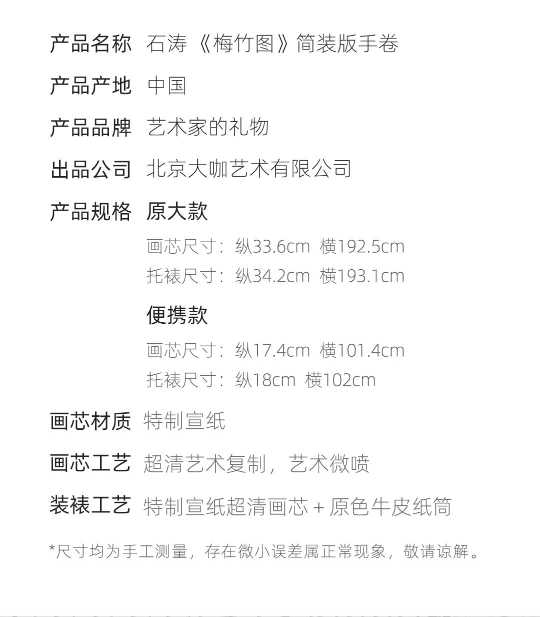 石涛《梅竹图》简版手卷,原作超清复刻,特制宣纸画芯手工托裱 简介