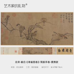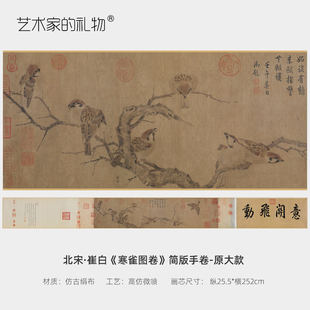 崔白《寒雀图卷》简版手卷,原作超清复刻,仿古绢布画芯手工托裱 简介