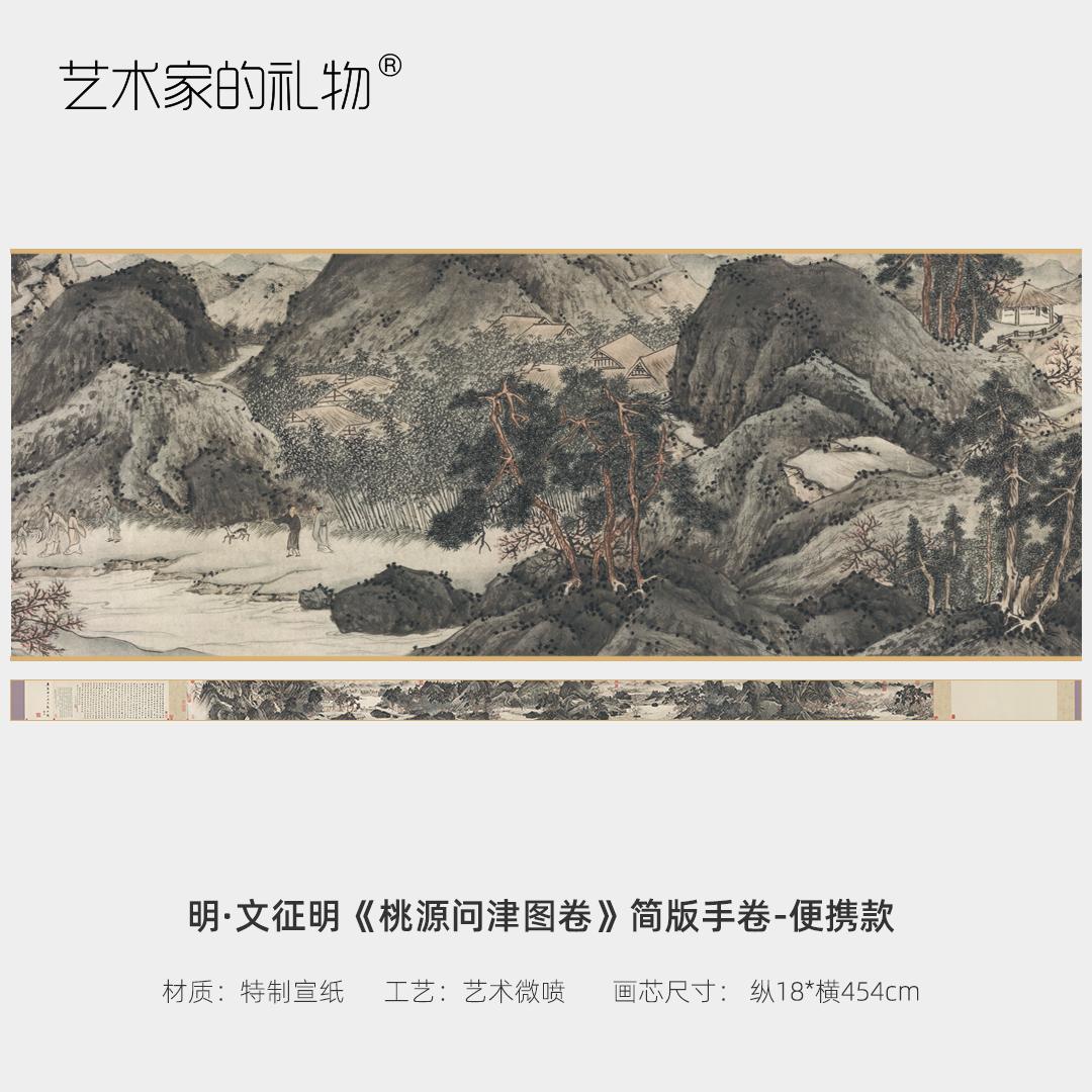 首页 艺术名人馆 艺术家的礼物 文征明《桃源问津图》简版手卷,原作超清复刻,宣纸画芯手工托裱
