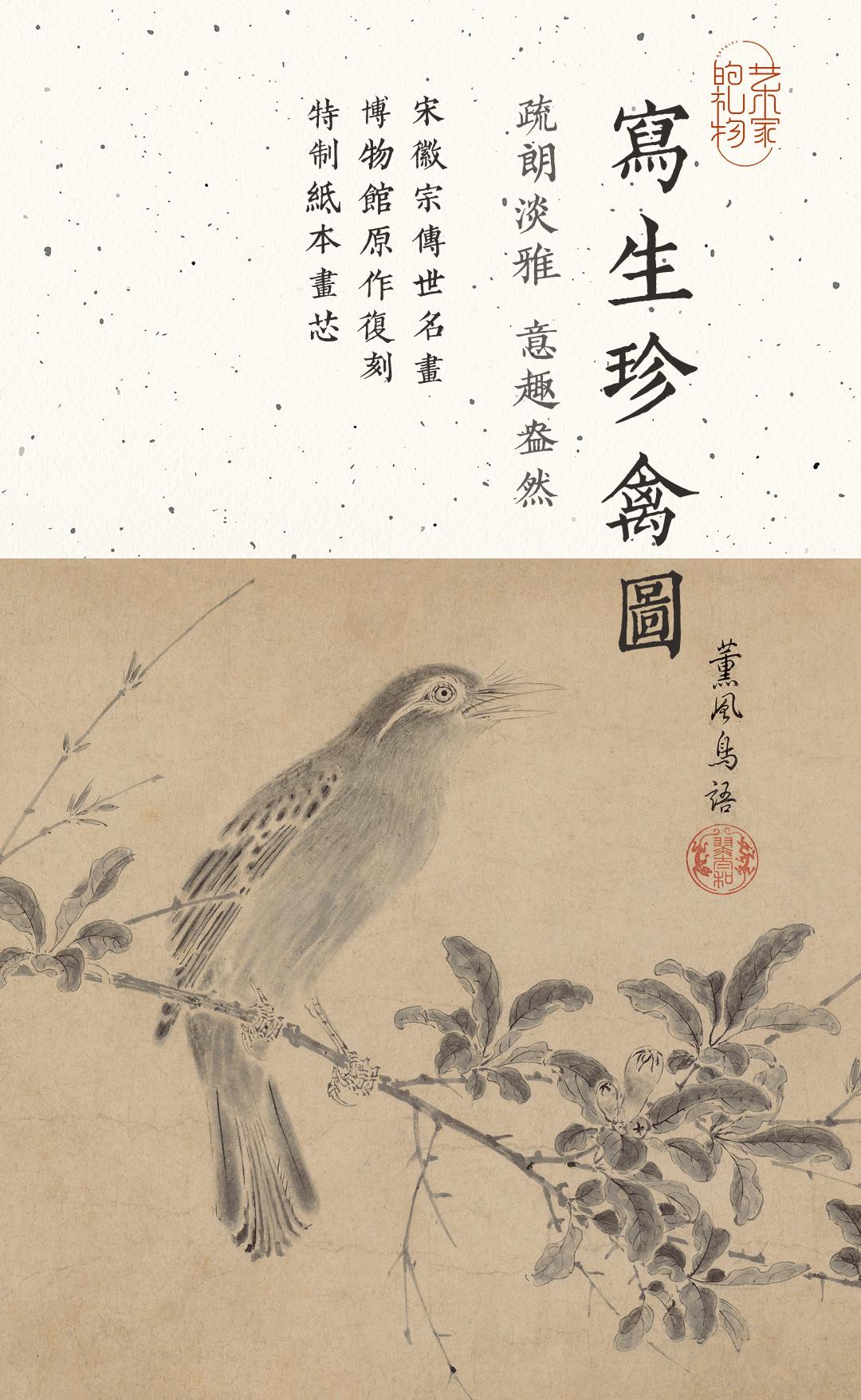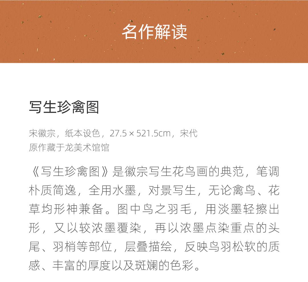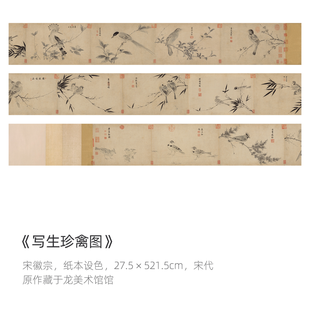 宋徽宗《写生珍禽图》简版手卷,原作超清复刻,特制宣纸画芯托裱 简介