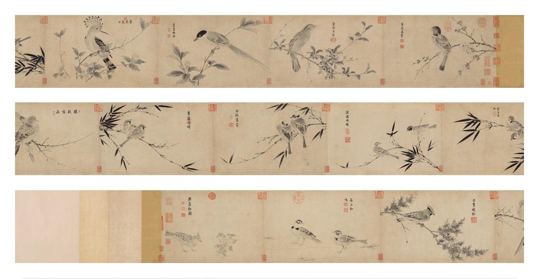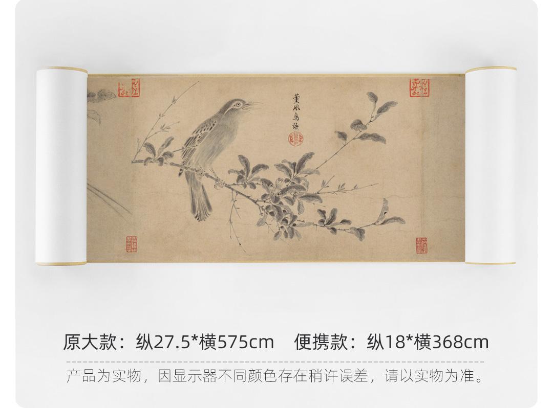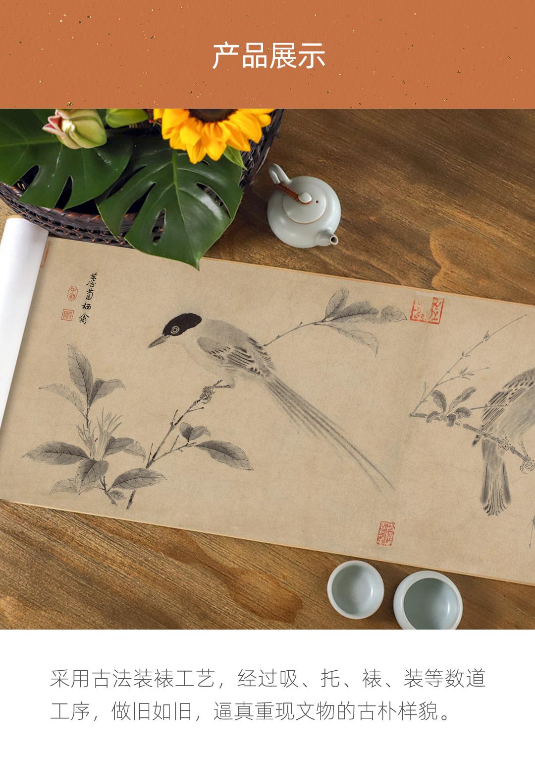 宋徽宗《写生珍禽图》简版手卷,原作超清复刻,特制宣纸画芯托裱