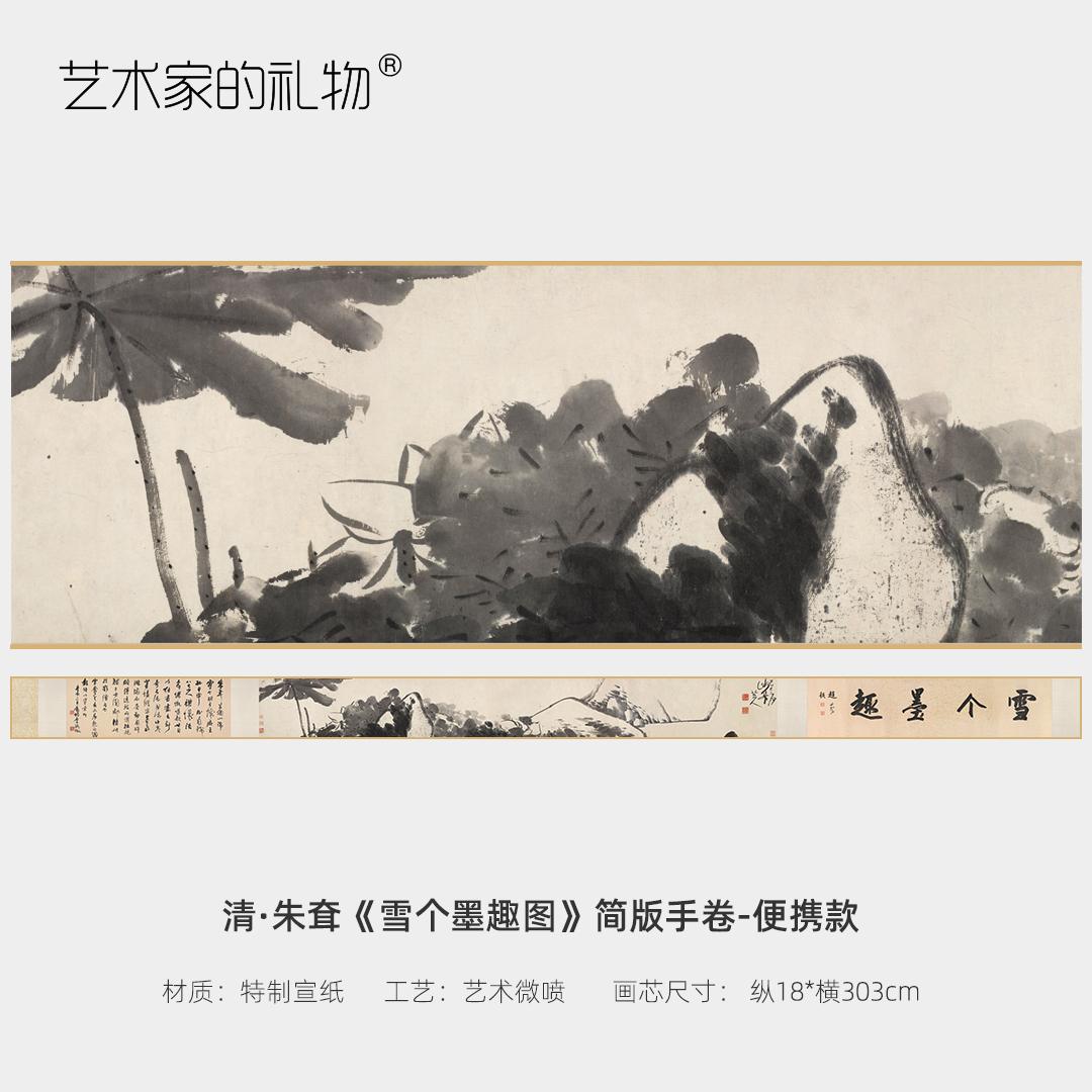 朱耷《雪个墨趣图》简版手卷,原帖超清复刻,宣纸画芯手工托裱 简介