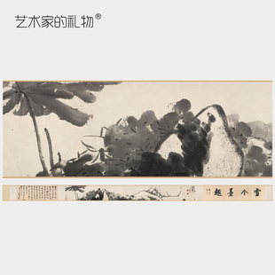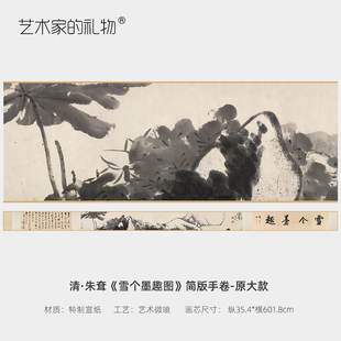 朱耷《雪个墨趣图》简版手卷,原帖超清复刻,宣纸画芯手工托裱