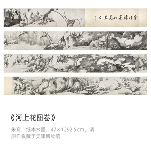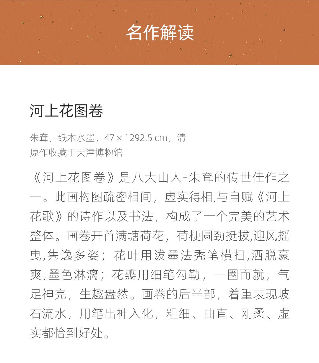 朱耷《河上花图卷》简版手卷,原作超清复刻,宣纸画芯手工托裱 简介