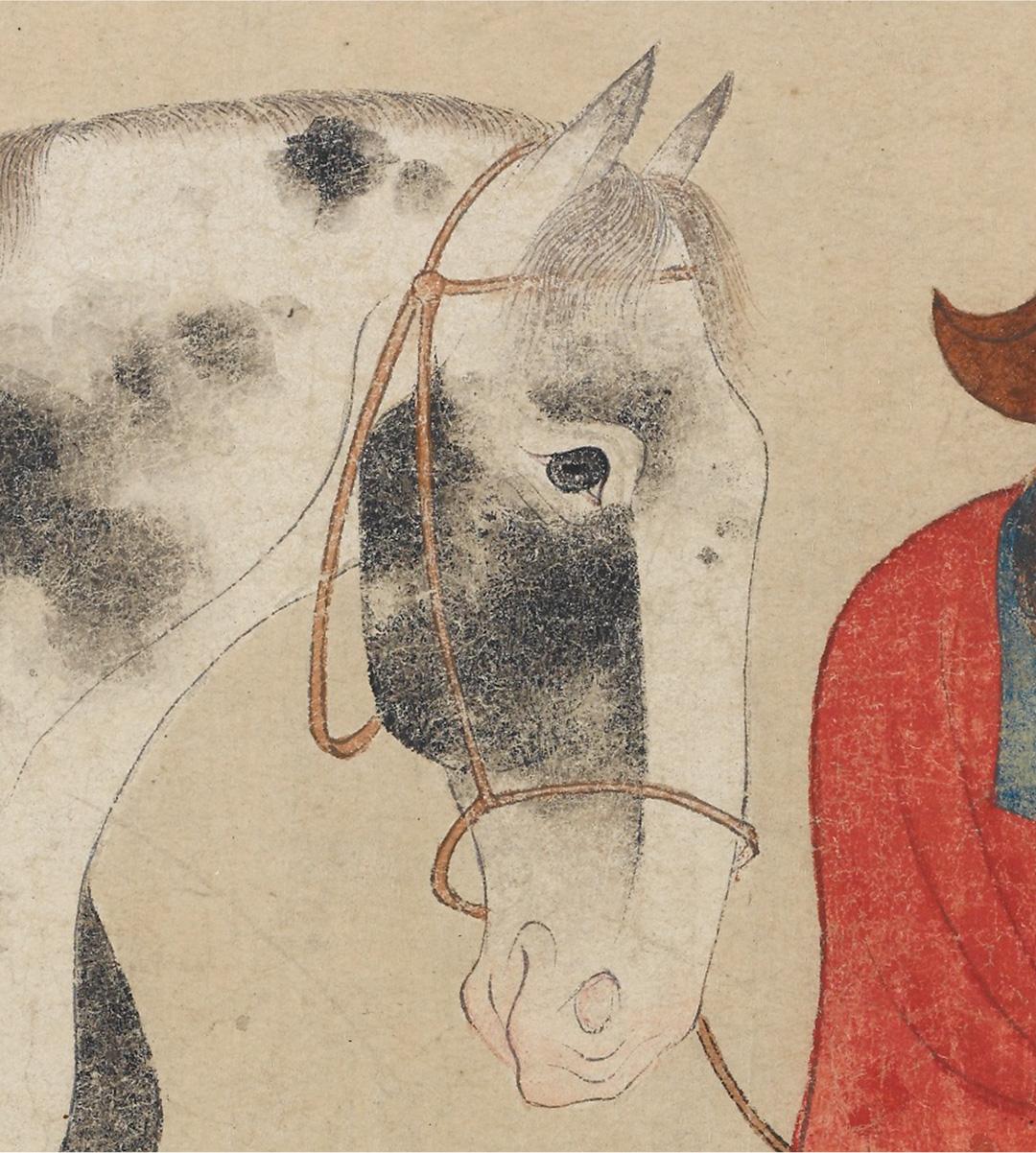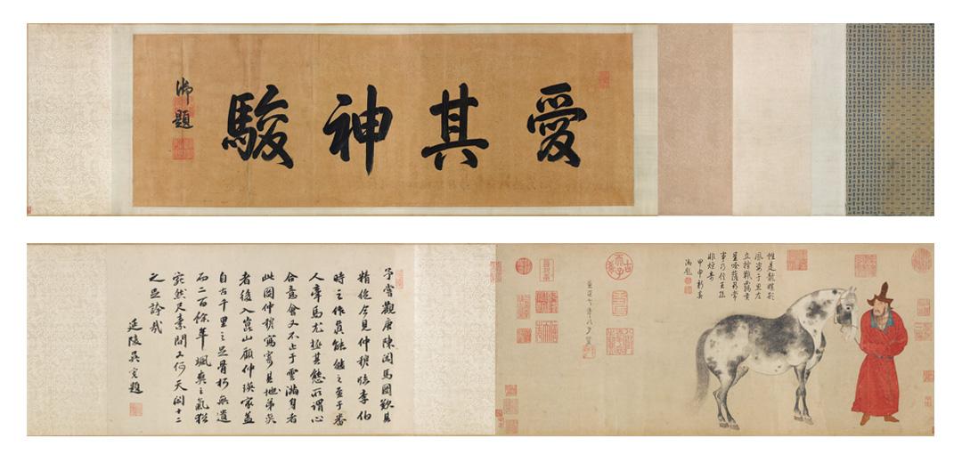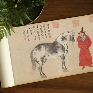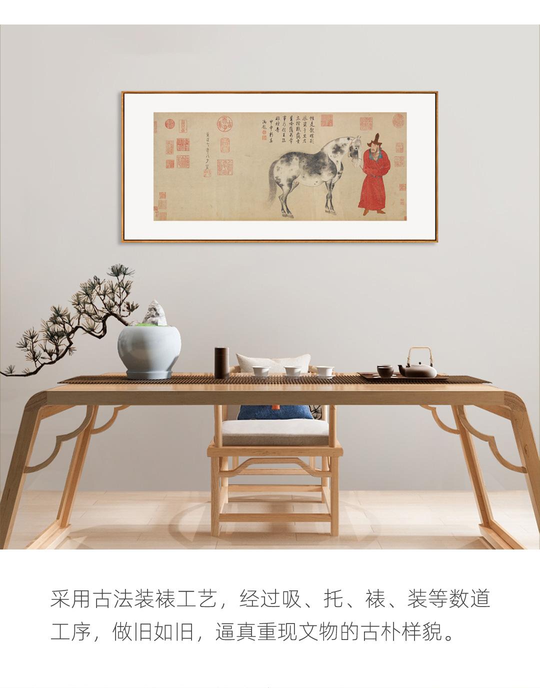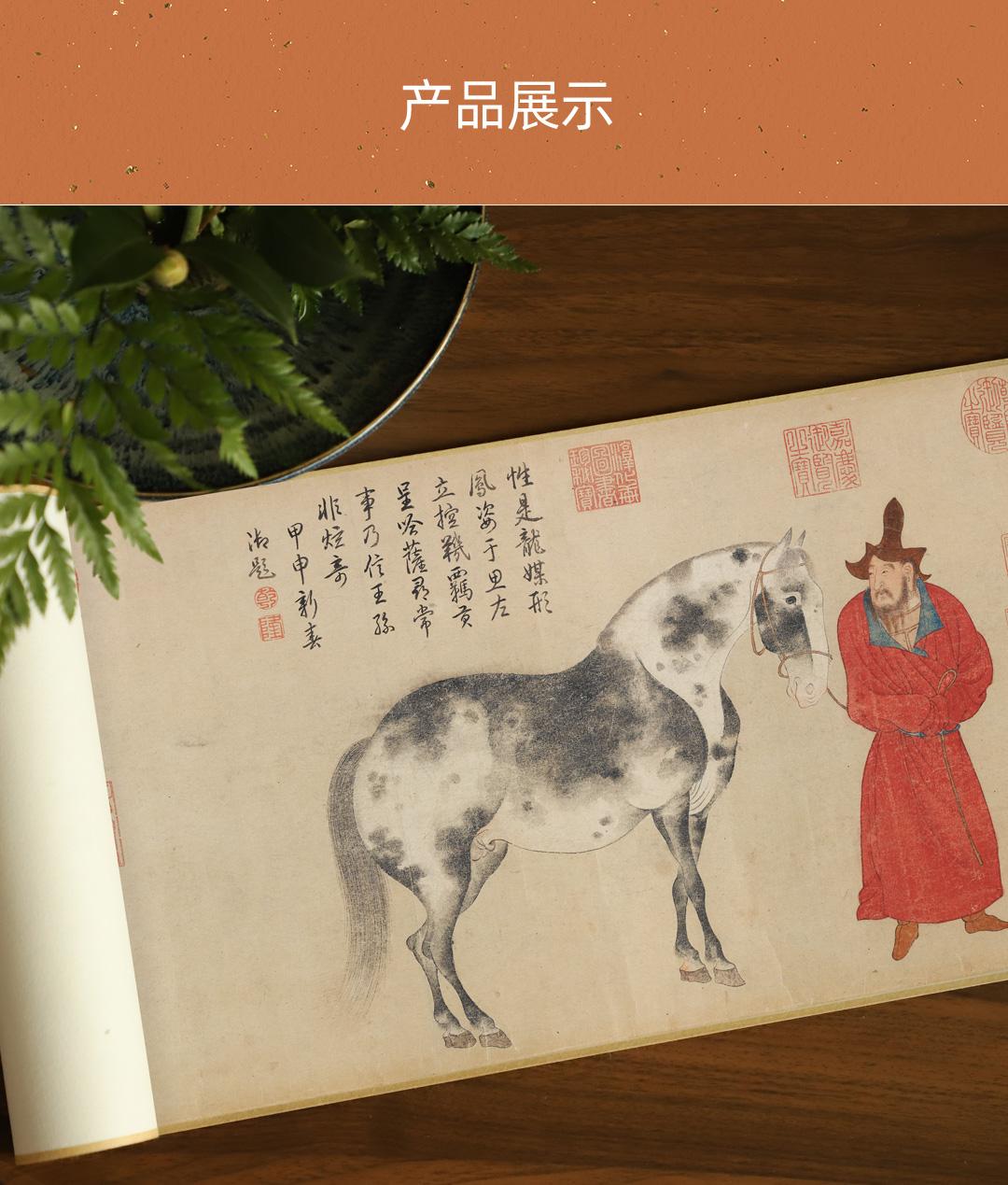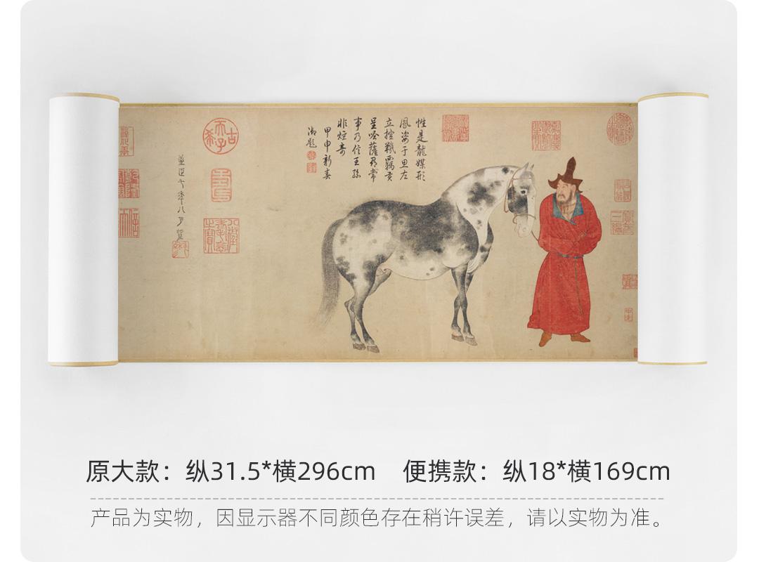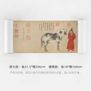 赵雍《临李公麟人马图卷》画芯手卷,原作超清复刻,宣纸画芯托裱