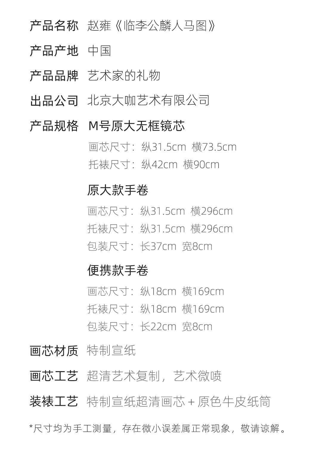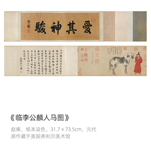 赵雍《临李公麟人马图卷》画芯手卷,原作超清复刻,宣纸画芯托裱 简介