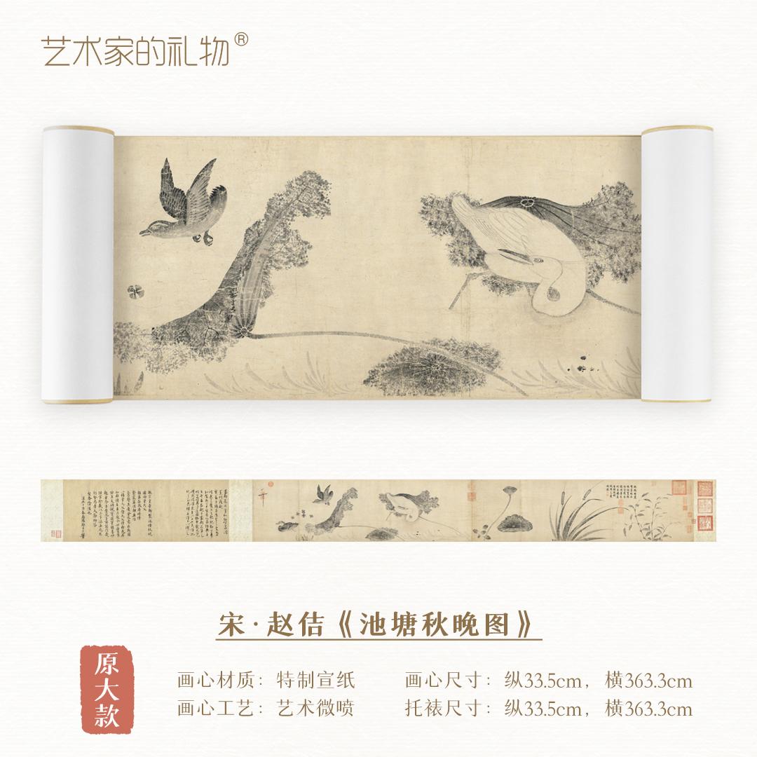 宋·赵佶《池塘秋晚图》手卷 宣纸画芯 原作超清复刻精裱 简介