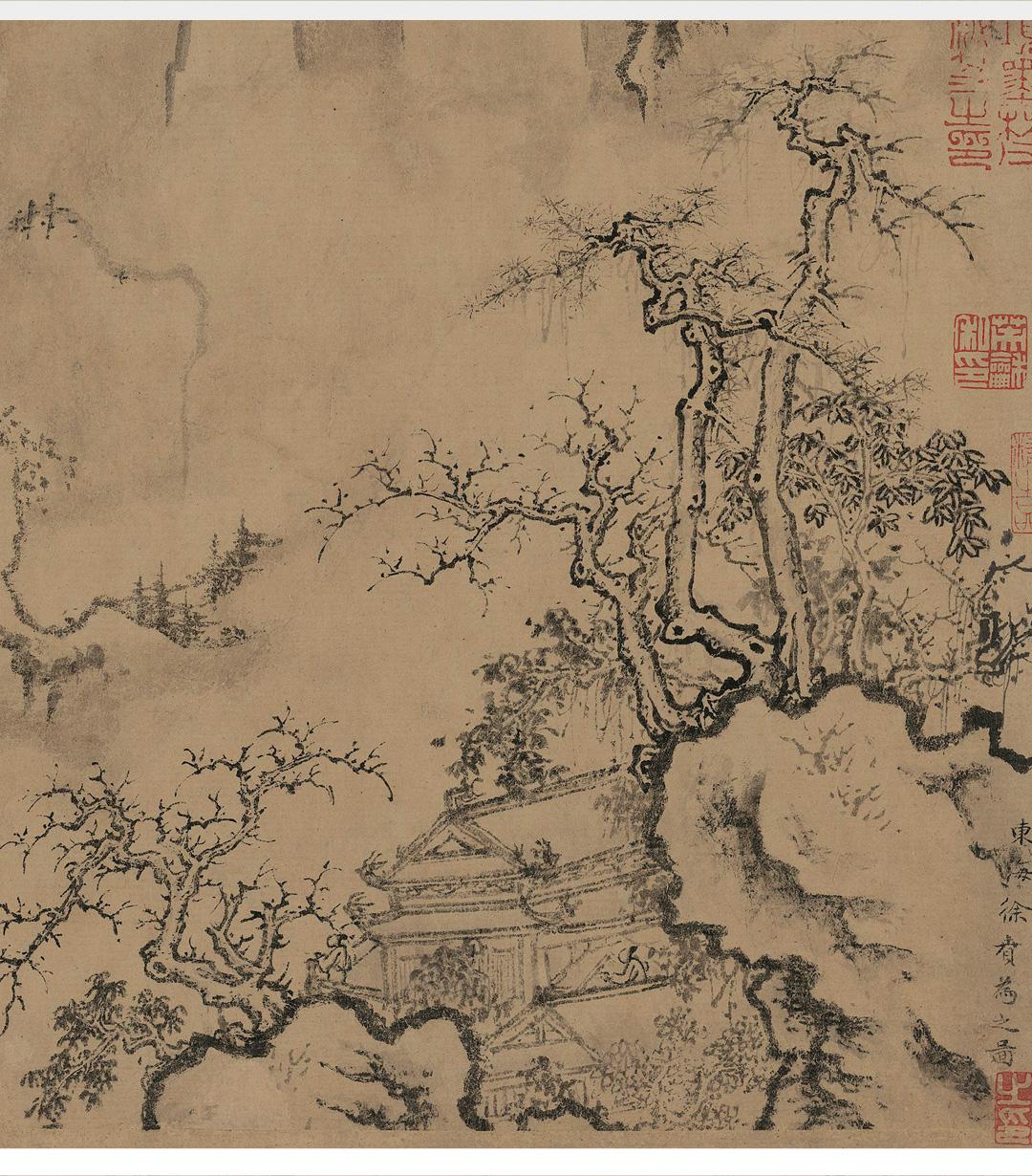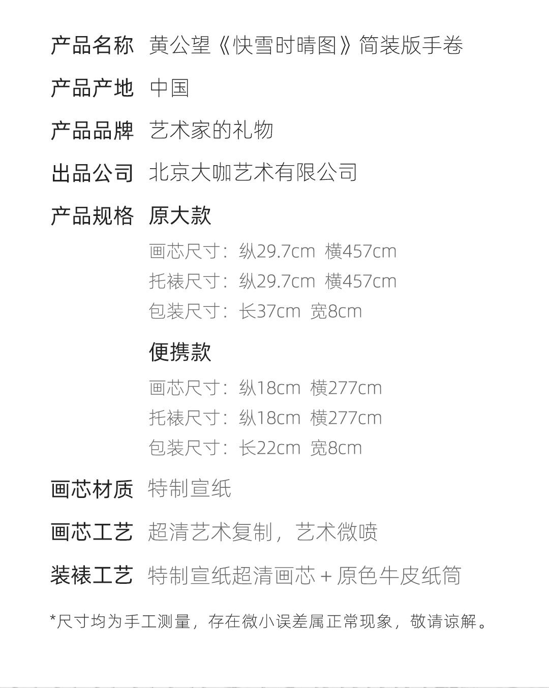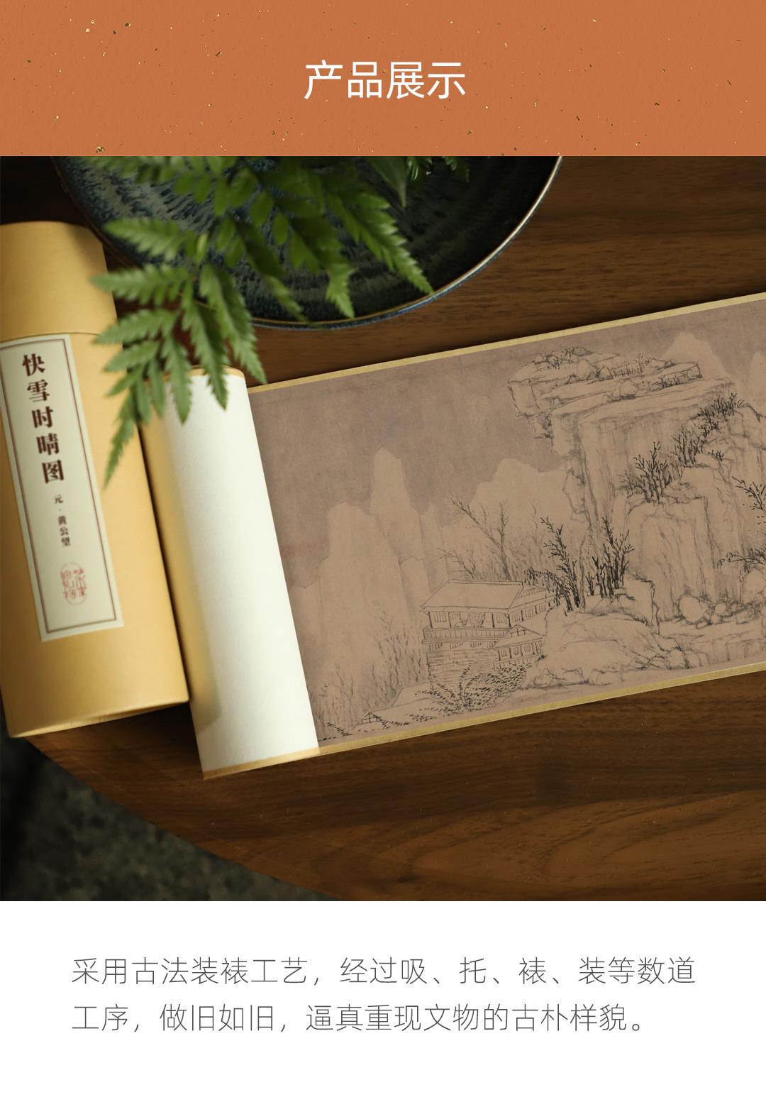 黄公望《快雪时晴图》简版手卷,原作超清复刻,特制宣纸画芯托裱 简介