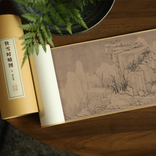 黄公望《快雪时晴图》简版手卷,原作超清复刻,特制宣纸画芯托裱