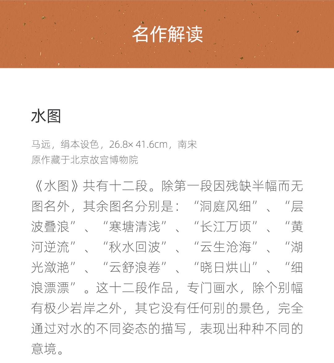 宋·马远《水图》简版手卷,原作超清复刻,仿古绢布画芯手工托裱 简介