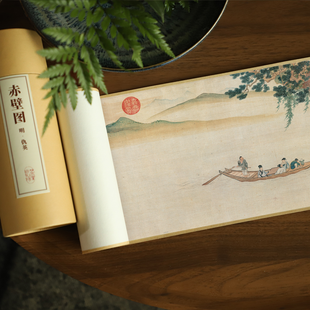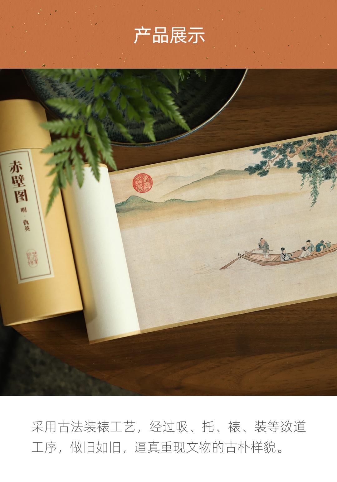 仇英《赤壁图卷》简版手卷,原作超清复刻,仿古绢布画芯手工托裱 简介