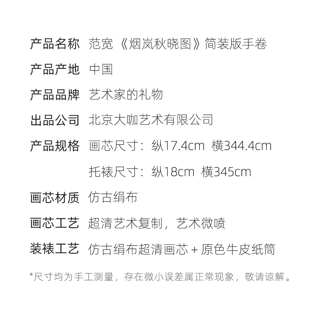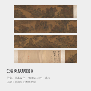 范宽《烟岚秋晓图》简版手卷,原作超清复刻,仿古绢布手工托裱 简介