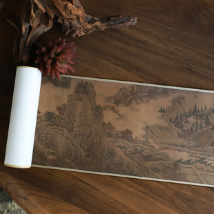 范宽《烟岚秋晓图》简版手卷,原作超清复刻,仿古绢布手工托裱