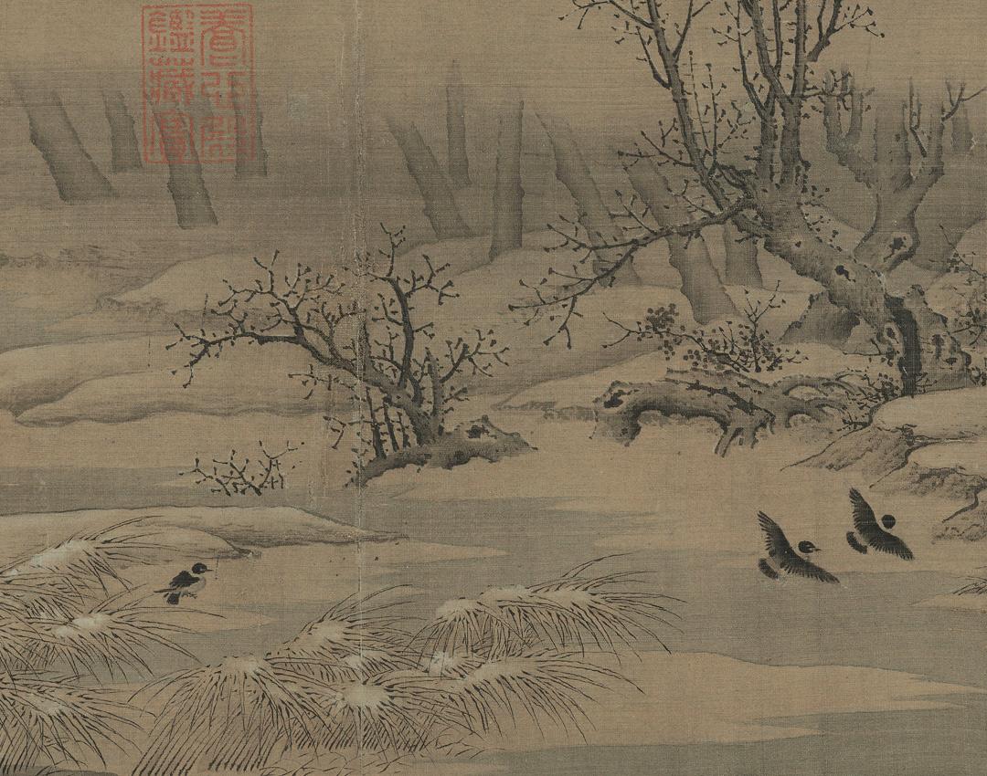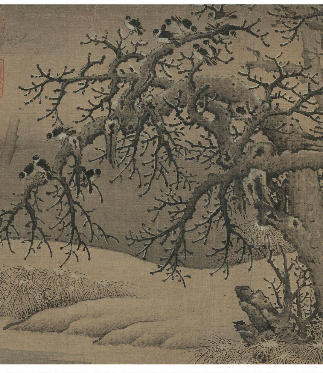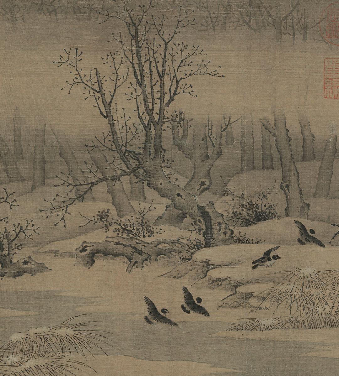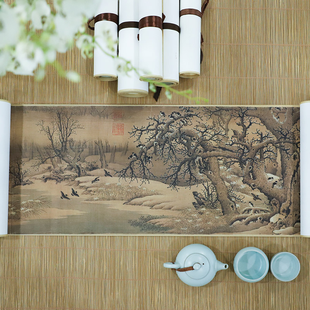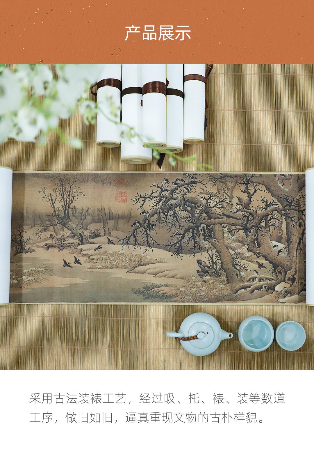 李成《寒鸦图》简版手卷,原作超清复刻,仿古绢布画芯手工托裱 简介
