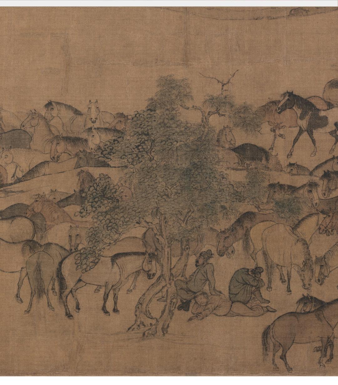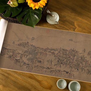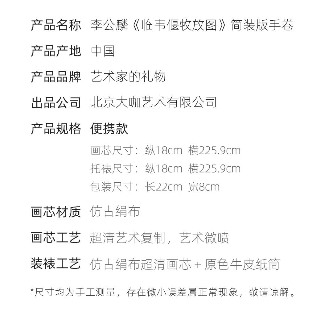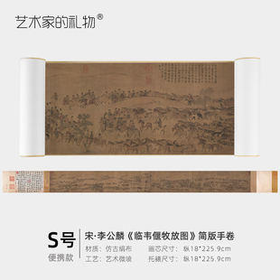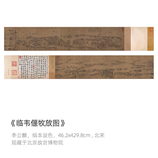李公麟《临韦偃牧放图》简版手卷,原作超清复刻,仿古绢布画芯 简介