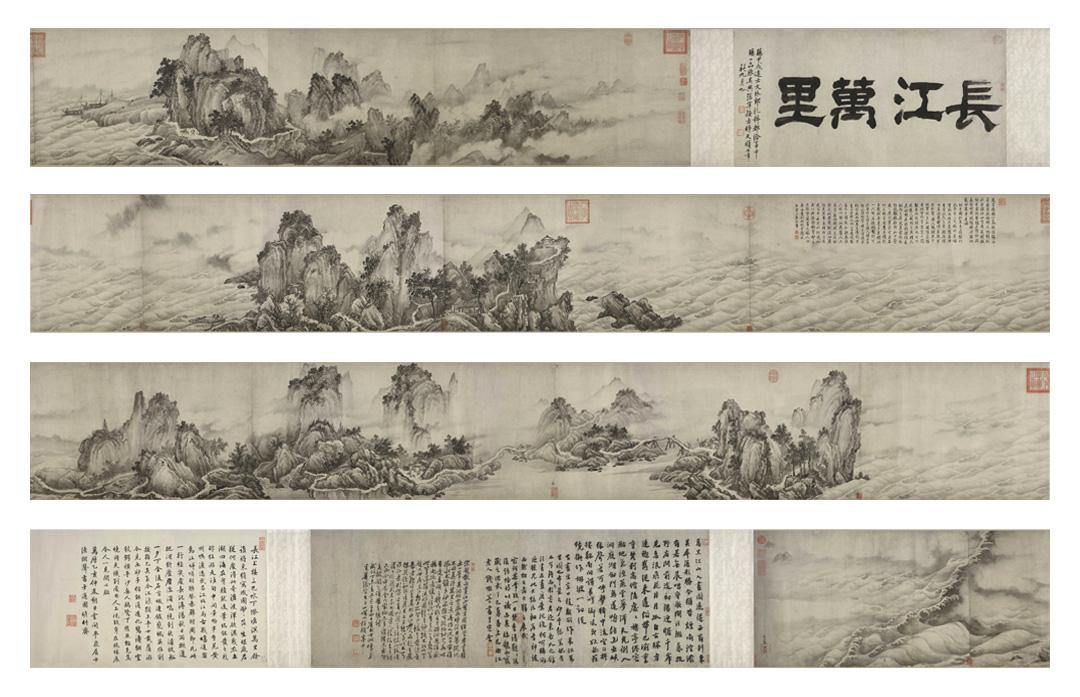 北宋·赵芾《江山万里图》简版手卷,原作超清复刻,宣纸画芯托裱
