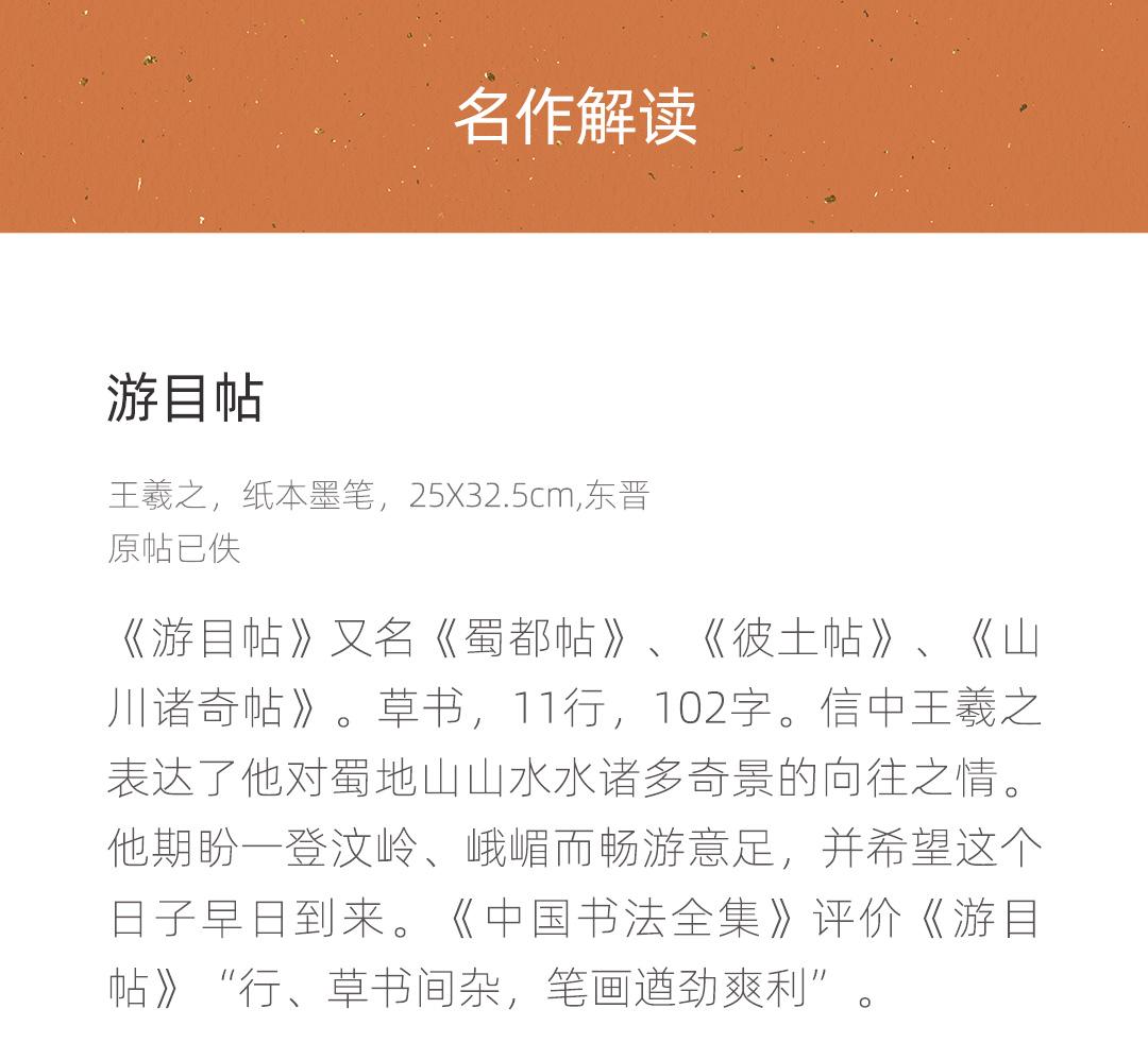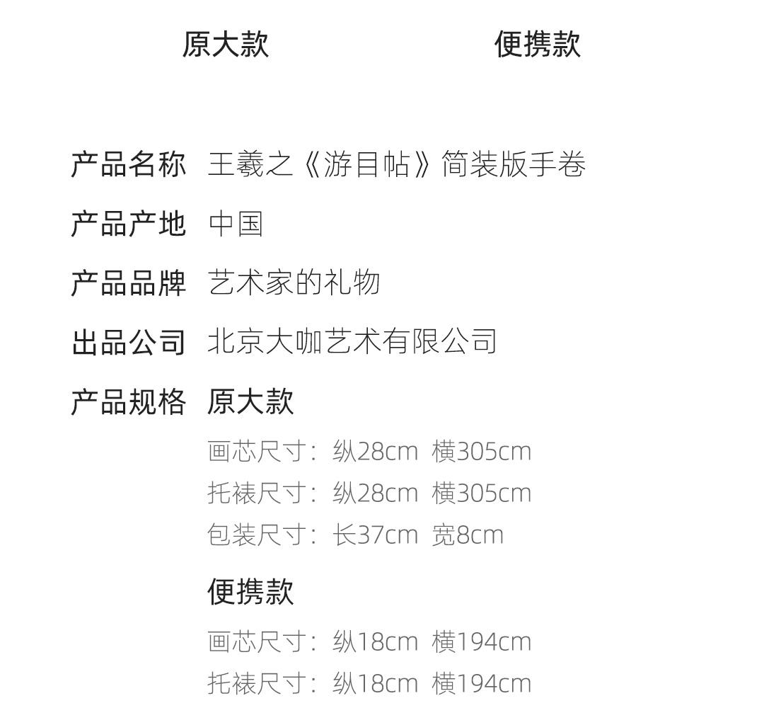 王羲之《游目帖》简版手卷,原作超清复刻,特制宣纸画芯手工托裱 简介