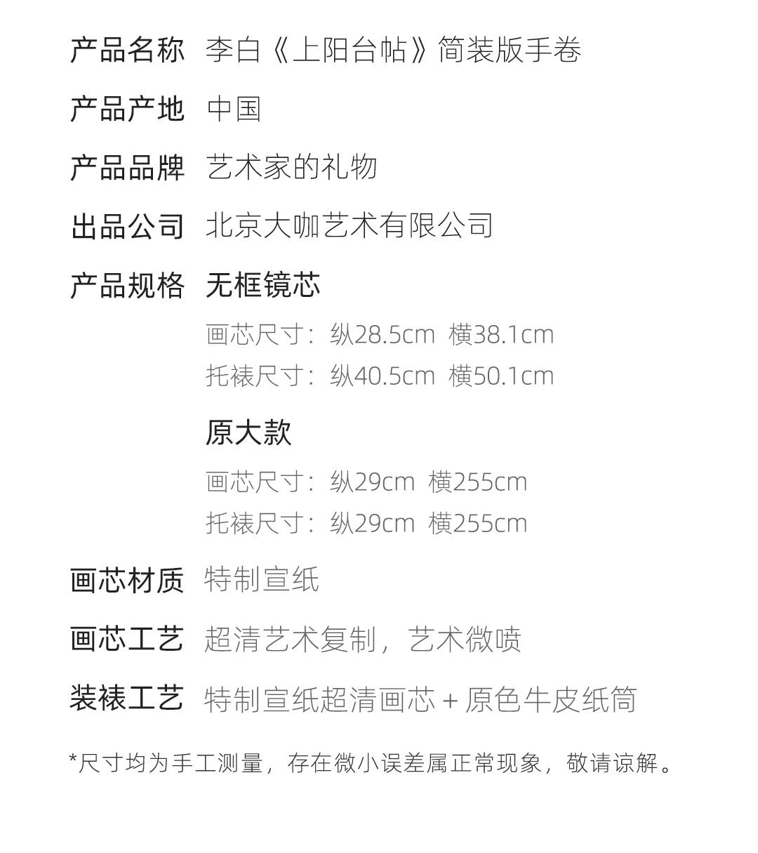 唐·李白《上阳台帖》手卷 特种宣纸画芯 原作超清复刻精裱 简介