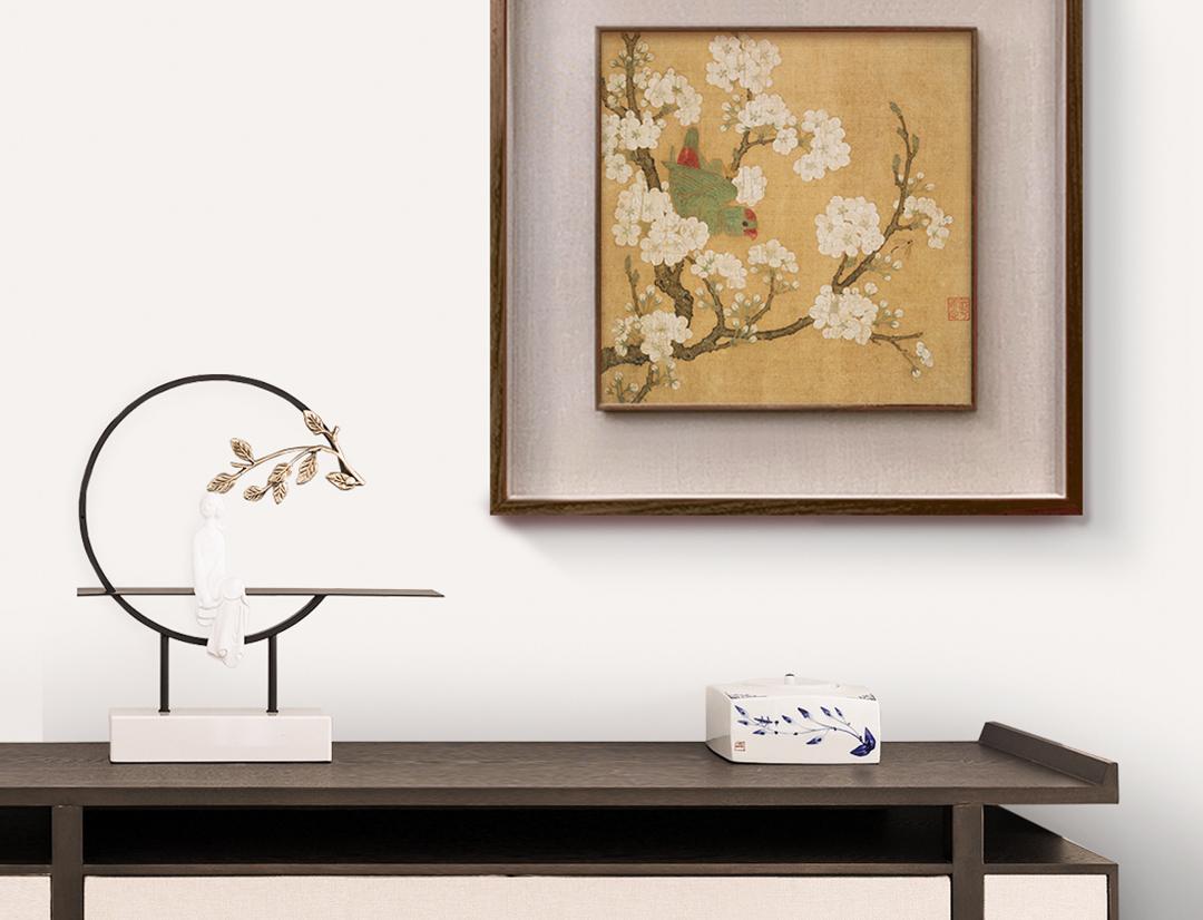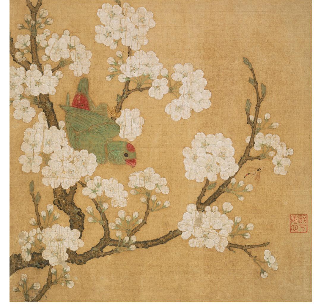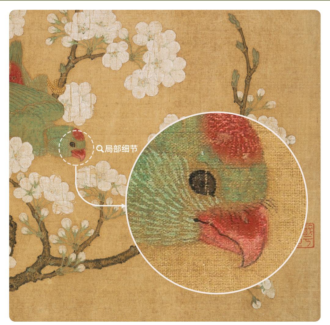 黄居寀-梨花鹦鹉图 博物馆复刻版画 新中式玄关装饰画书房挂画 简介