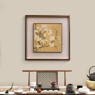黄居寀-梨花鹦鹉图 博物馆复刻版画 新中式玄关装饰画书房挂画