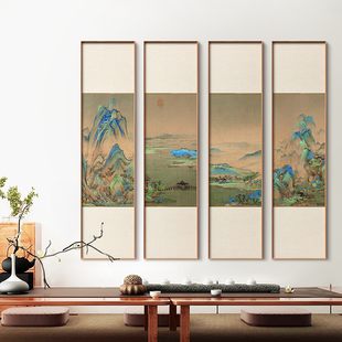 王希孟-千里江山图 新中式客厅装饰画 实木框内外双层立体精裱