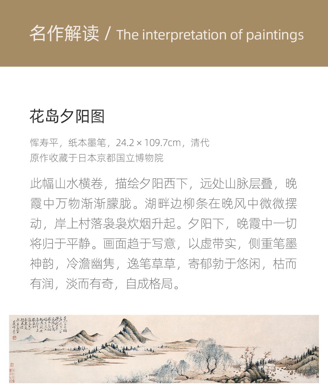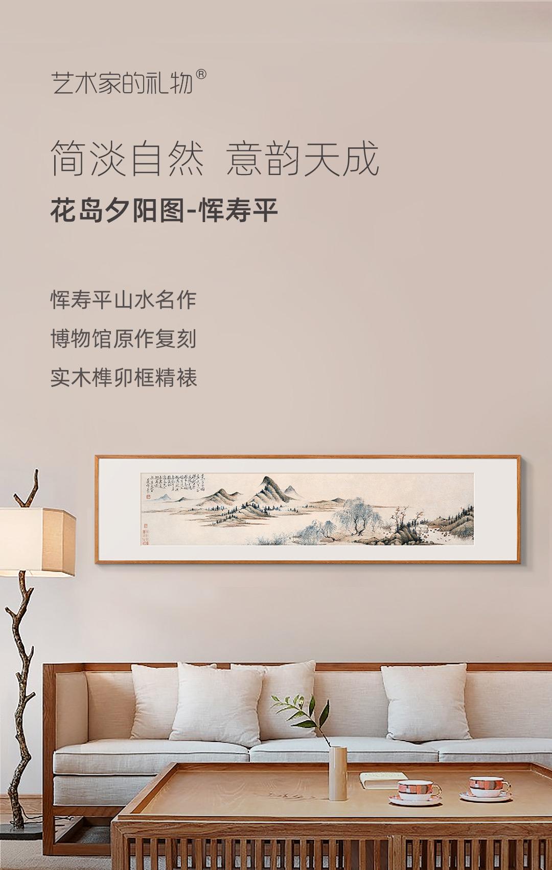 恽寿平-花岛夕阳图 博物馆复刻版画 新中式客厅装饰画书房挂画 简介