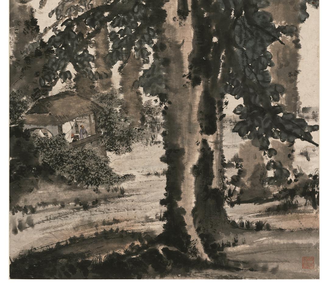 傅抱石-大涤草堂图 博物馆复刻版画 新中式玄关装饰画茶室挂画