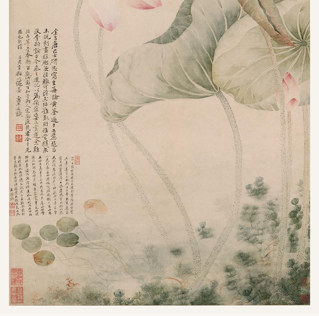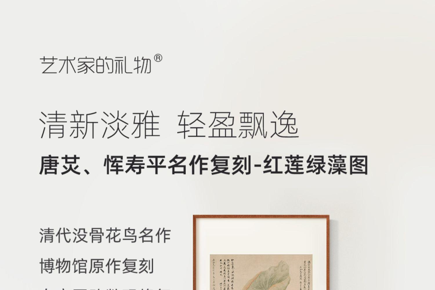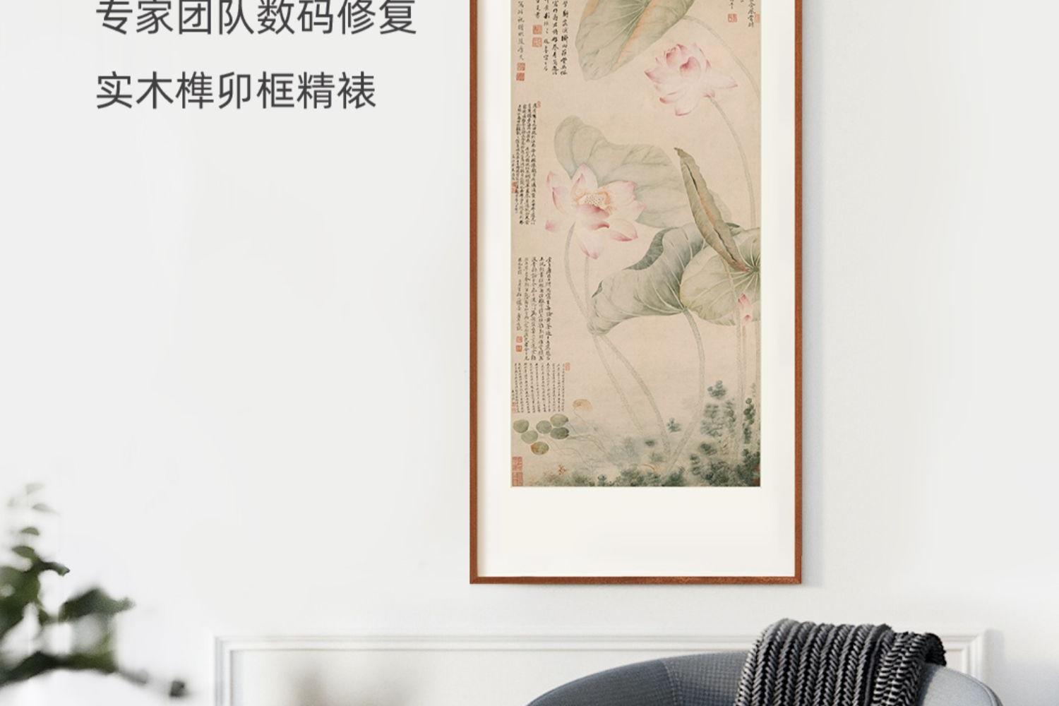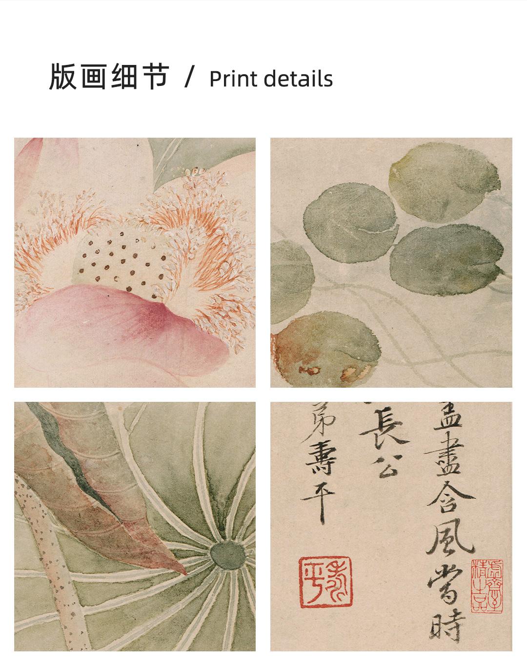 恽寿平-红莲绿藻图 博物馆复刻版画 新中式玄关装饰画书房挂画 简介