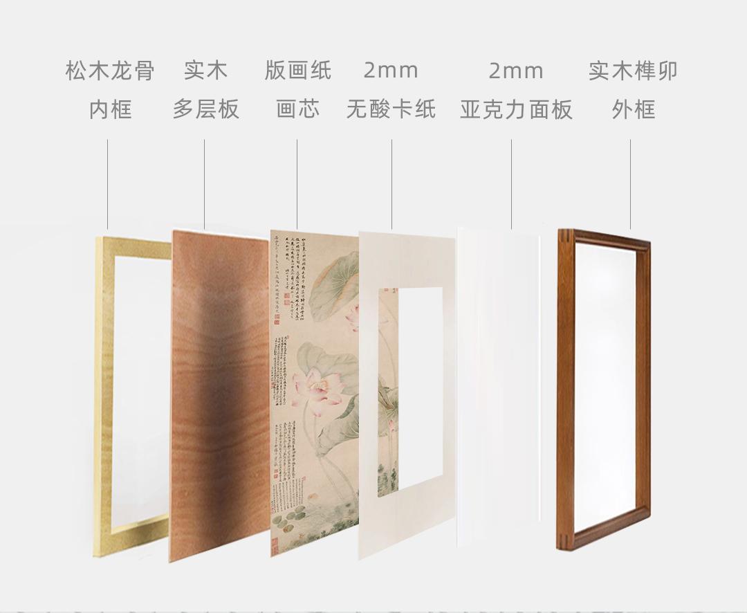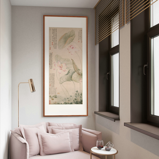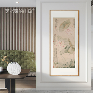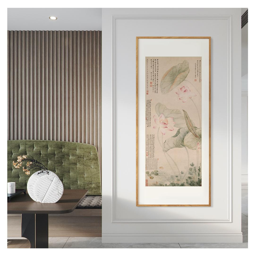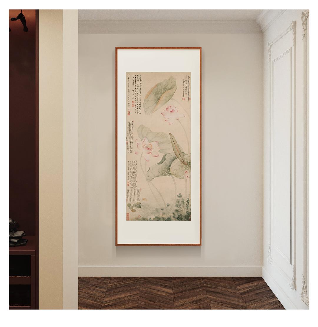 恽寿平-红莲绿藻图 博物馆复刻版画 新中式玄关装饰画书房挂画