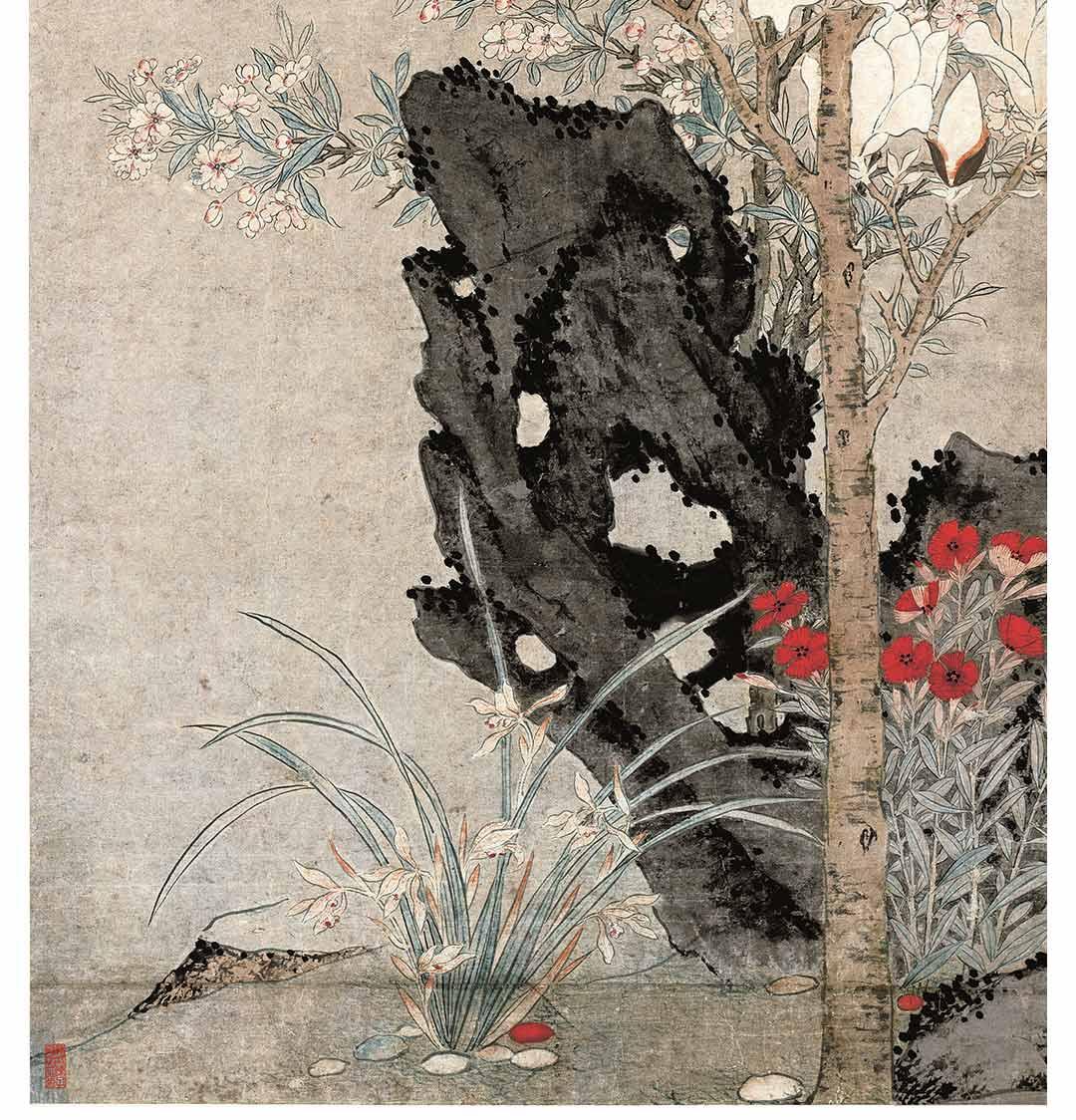 孙克弘-玉堂兰石图 博物馆复刻版画 新中式玄关装饰画竖版挂画