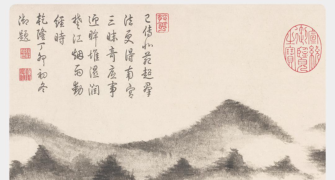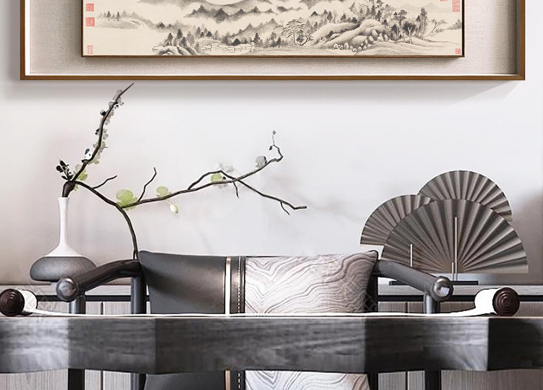 董其昌-潇湘白云图 博物馆复刻版画 新中式客厅装饰画山水挂画