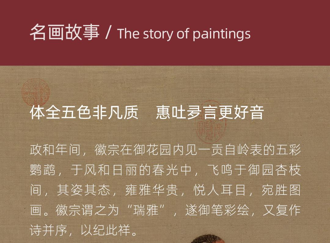 宋徽宗-五色鹦鹉图 博物馆复刻版画 新中式客厅装饰画挂画 简介
