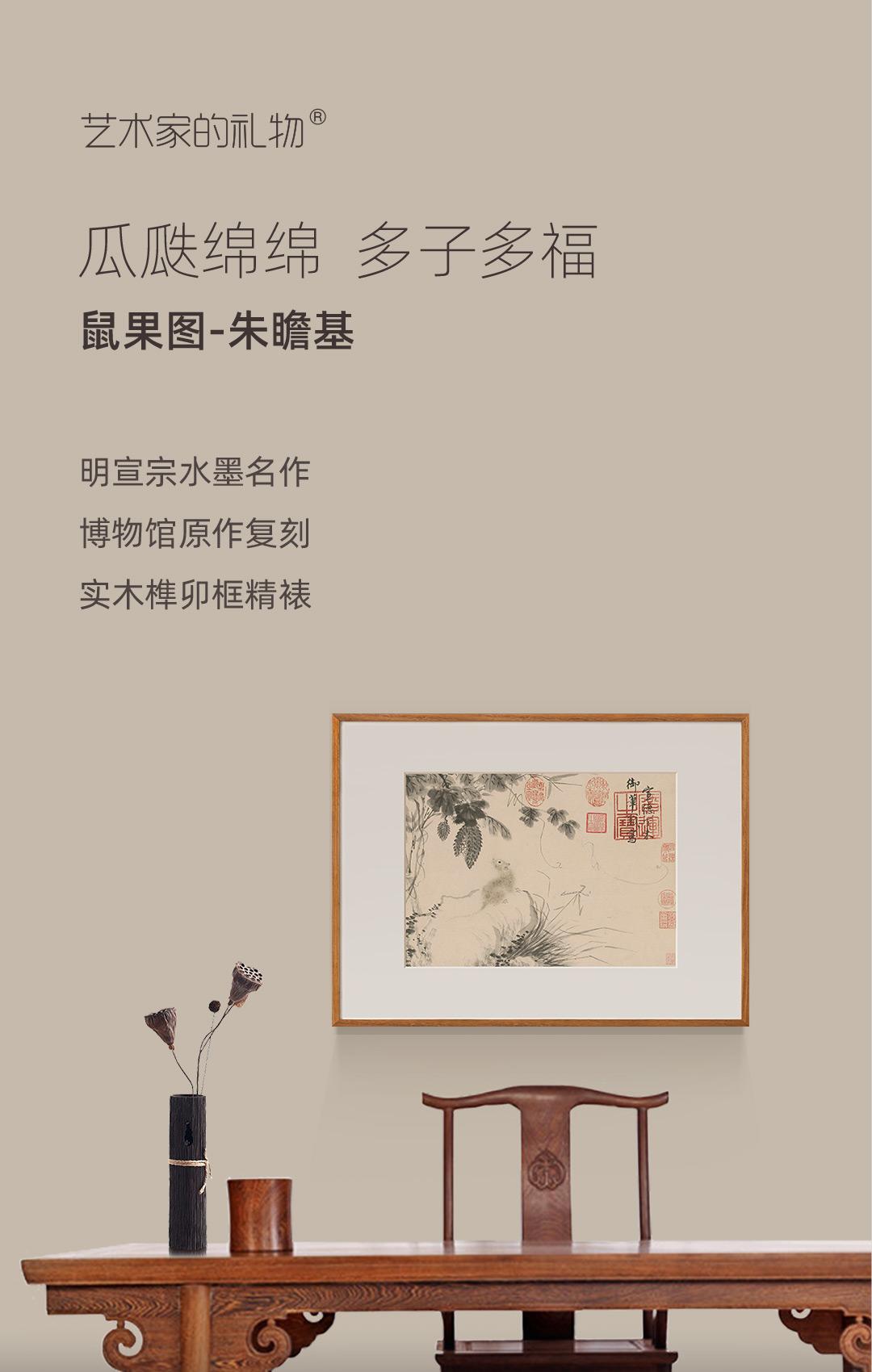 明宣宗-鼠果图 博物馆复刻版画 中式书房装饰画玄关挂画国画 简介