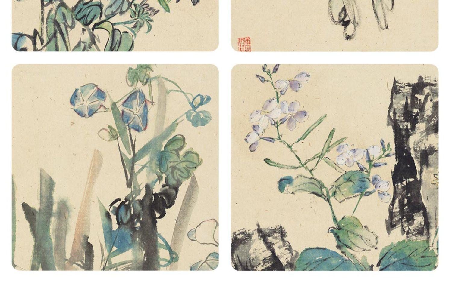 李鱓-花卉十开 博物馆复刻版画 新中式餐厅装饰画挂画中国画