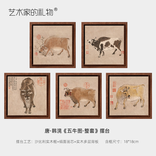 手工实木框名画小摆台 玄关柜酒柜摆件书桌饰品文创礼品