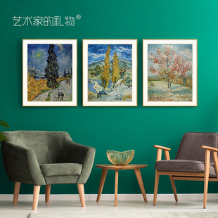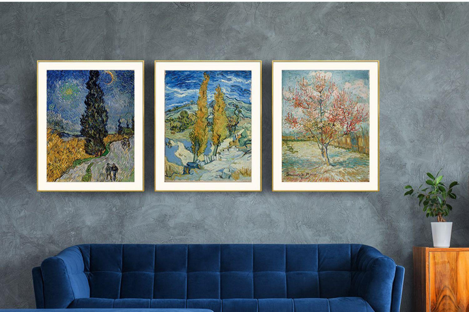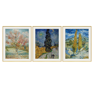 梵高-风景三联 博物馆级复刻版画 北欧客厅装饰画三联画玄关挂画