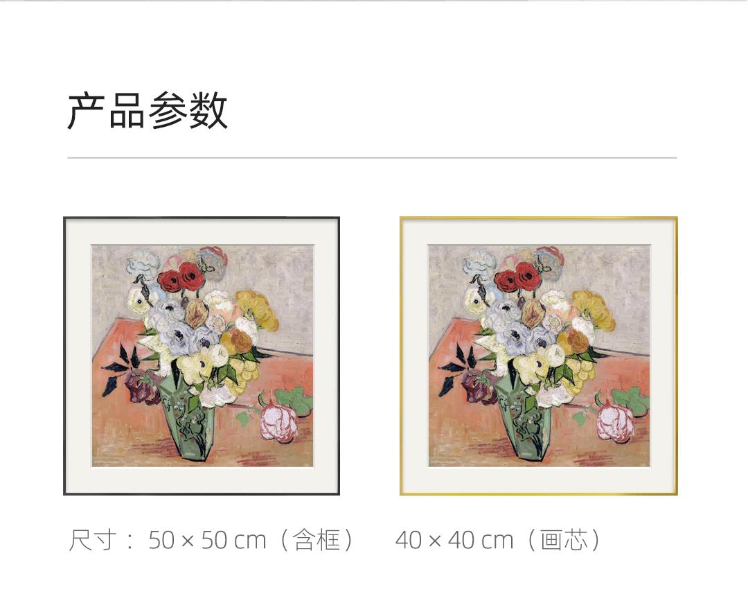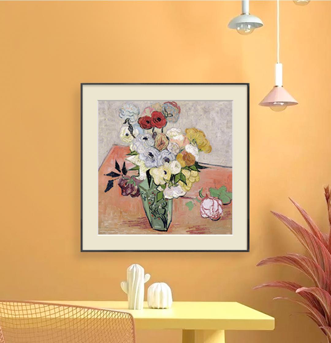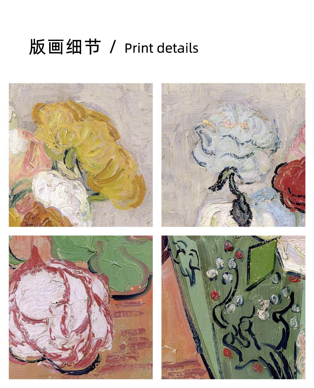 梵高-花瓶里的玫瑰与银莲花 博物馆级复刻版画 北欧客厅装饰油画 简介