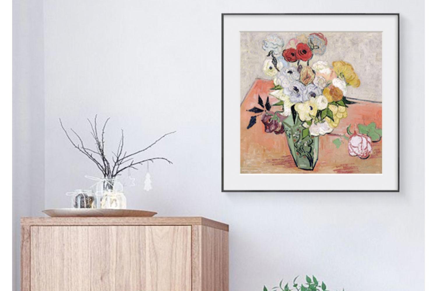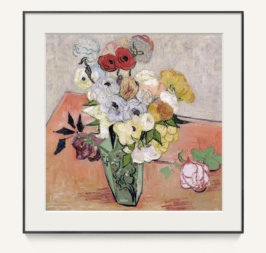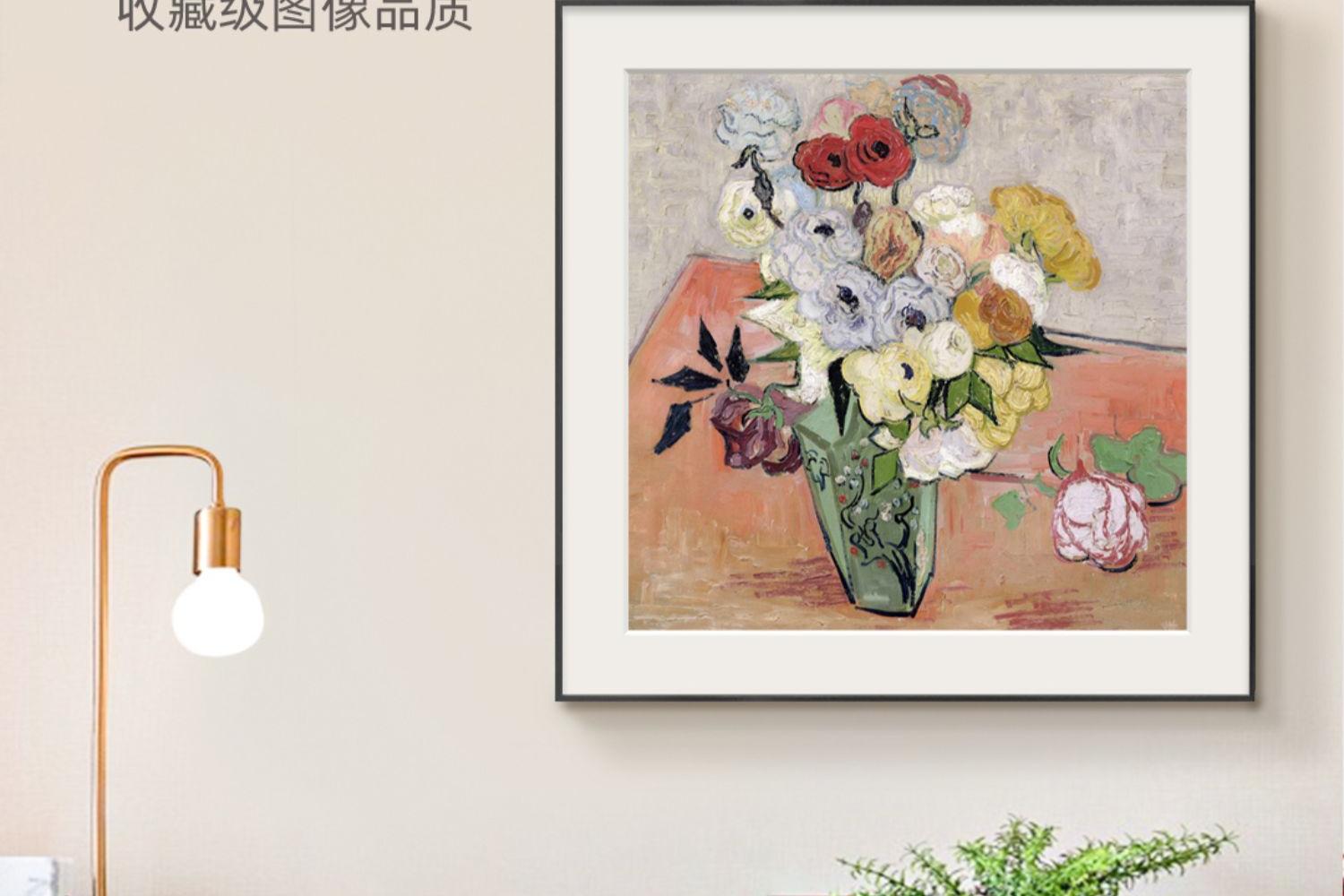 梵高-花瓶里的玫瑰与银莲花 博物馆级复刻版画 北欧客厅装饰油画 简介