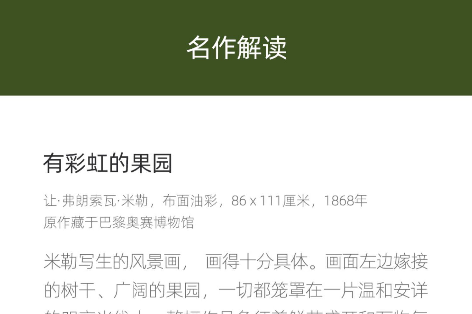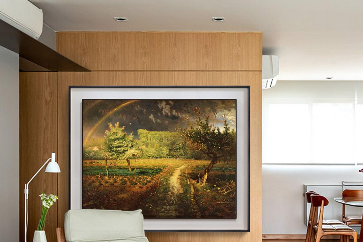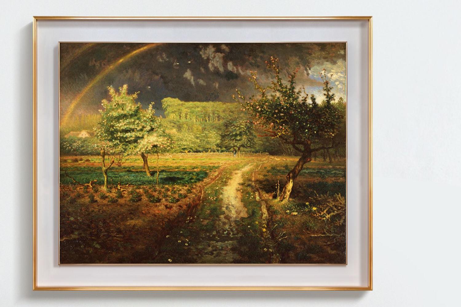 米勒-有彩虹的果园 博物馆级复刻版画 客厅装饰画玄关轻奢挂画 简介