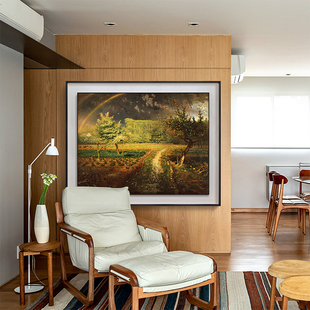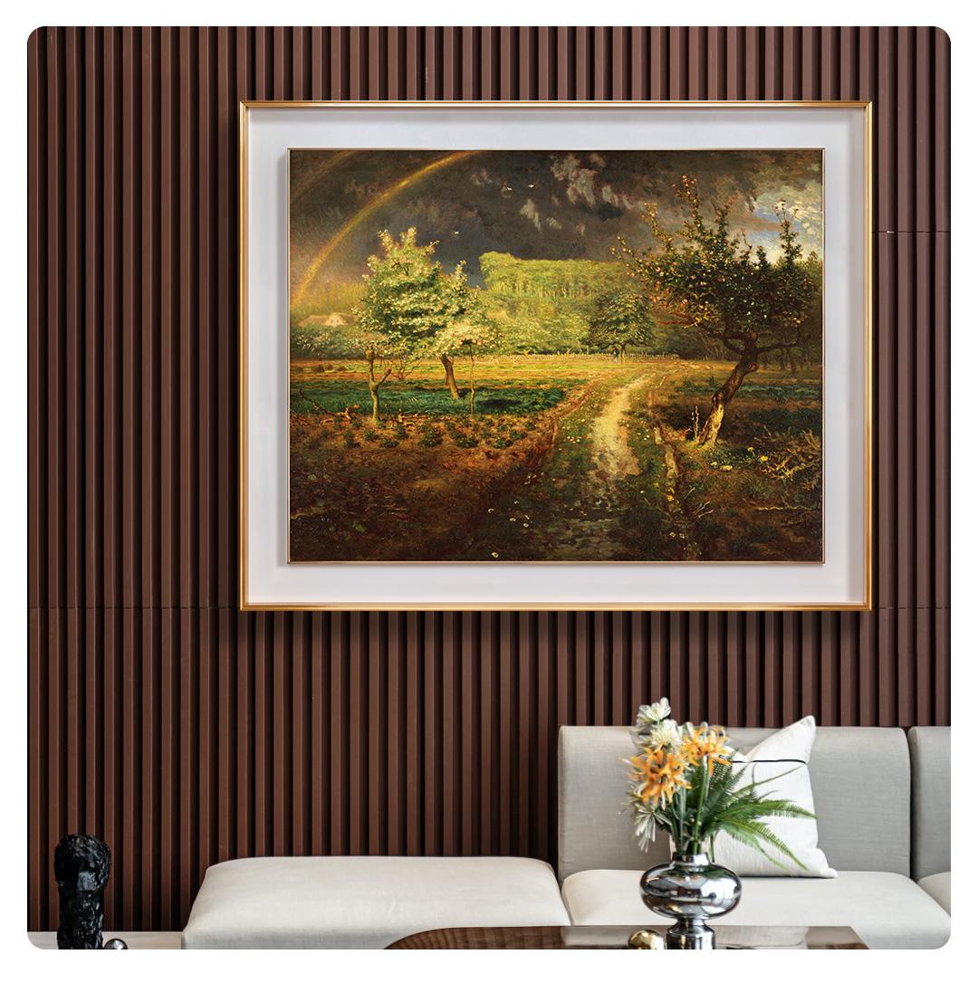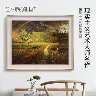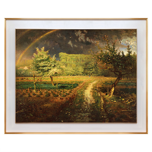 米勒-有彩虹的果园 博物馆级复刻版画 客厅装饰画玄关轻奢挂画