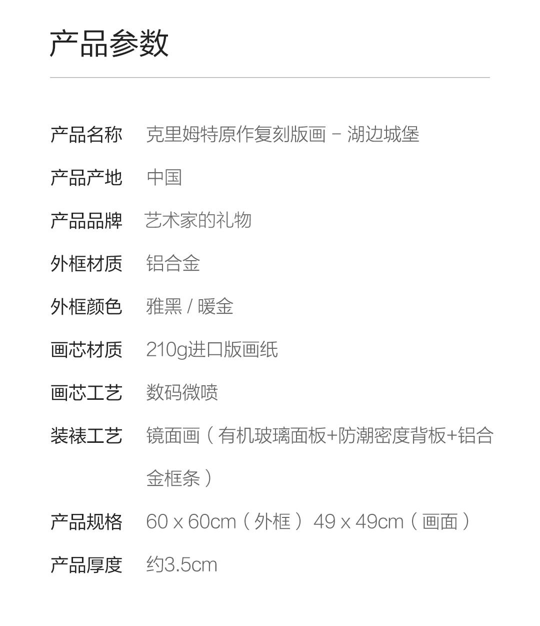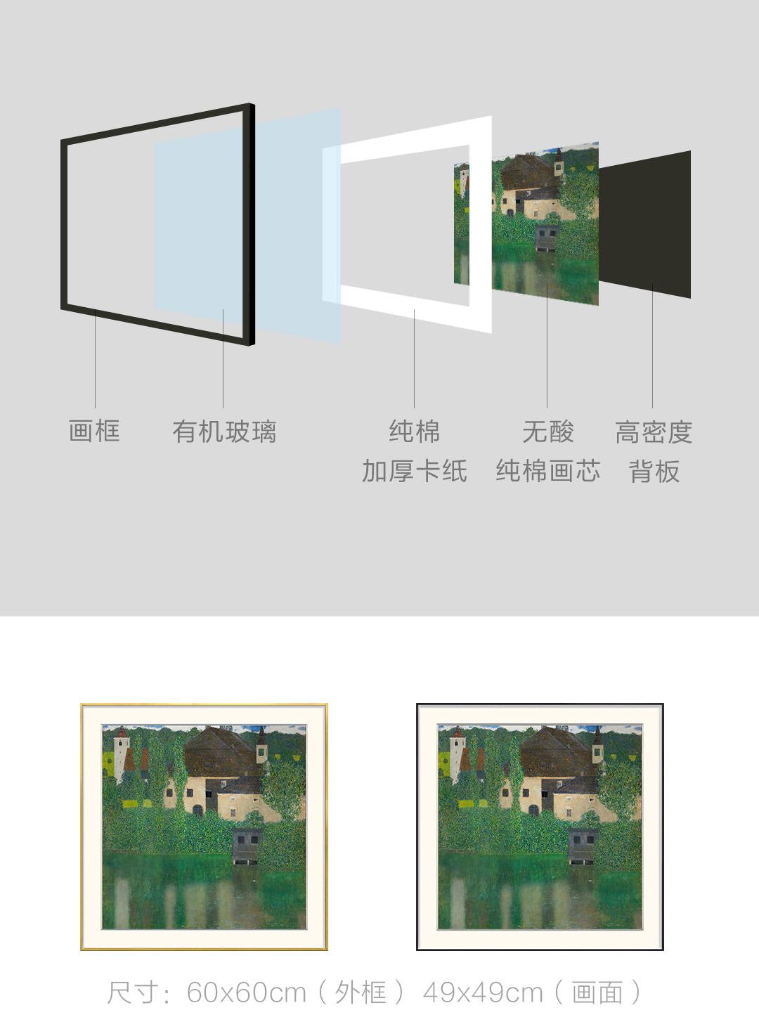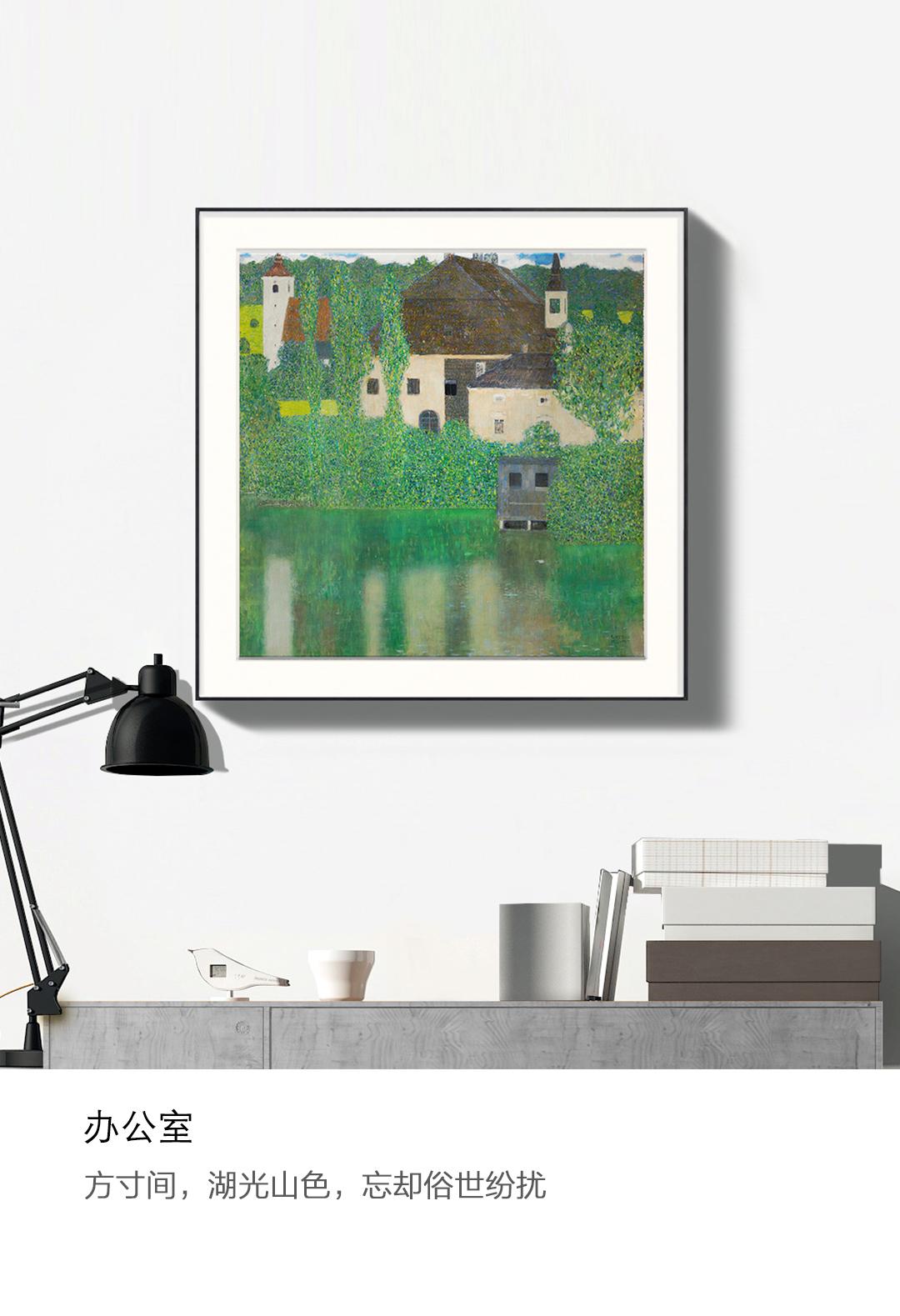 克里姆特-湖边城堡 博物馆级复刻版画 北欧客厅装饰画书房挂画 简介
