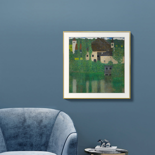 克里姆特-湖边城堡 博物馆级复刻版画 北欧客厅装饰画书房挂画