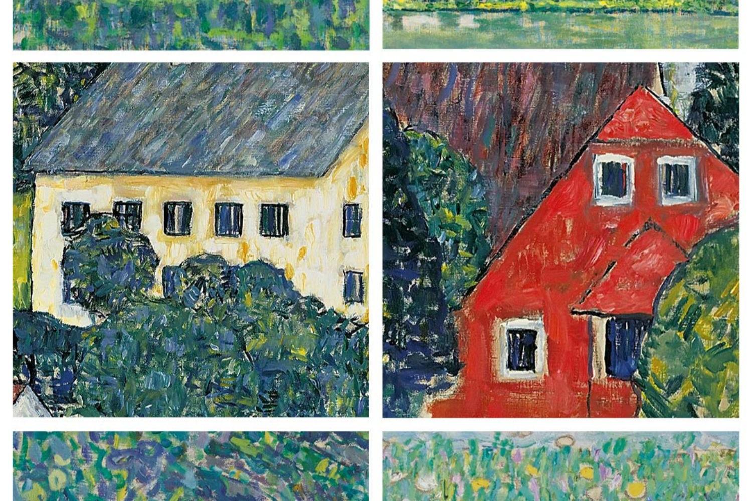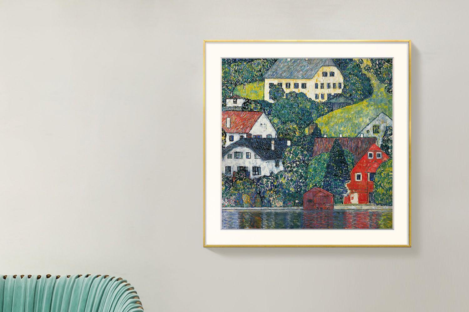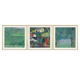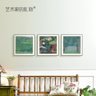 克里姆特油画风景 博物馆级复刻版画 客厅装饰沙发背景墙三联挂画