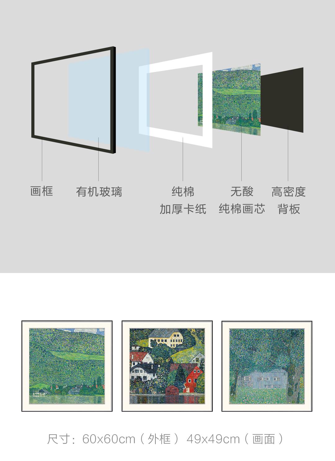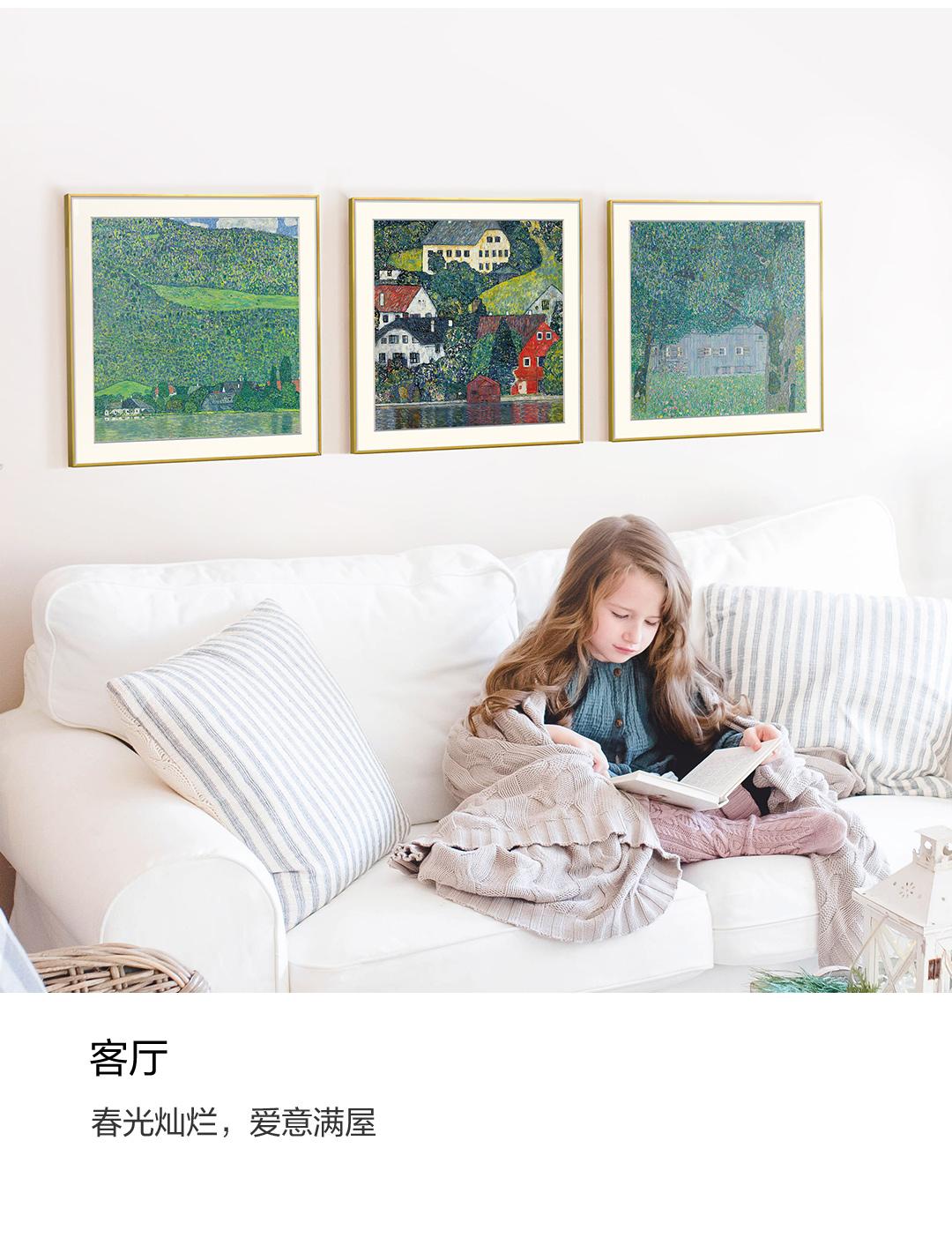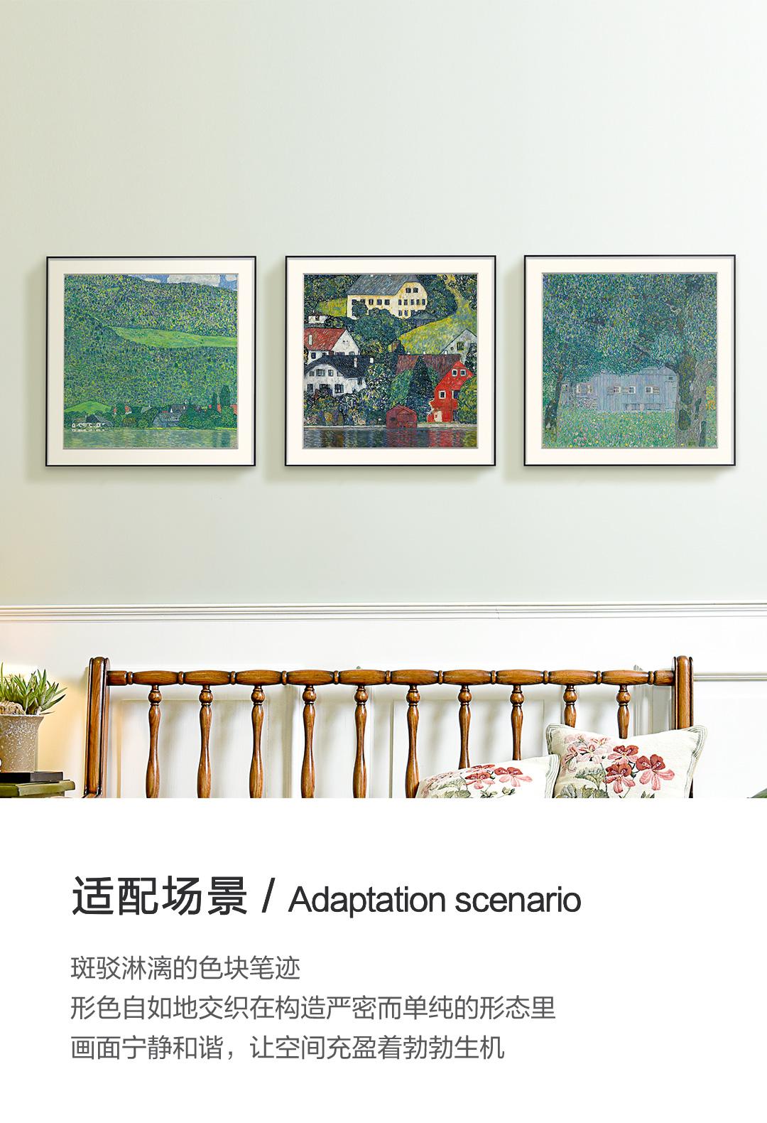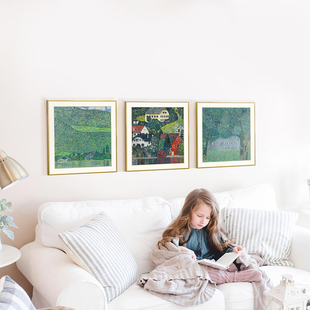 克里姆特油画风景 博物馆级复刻版画 客厅装饰沙发背景墙三联挂画 简介