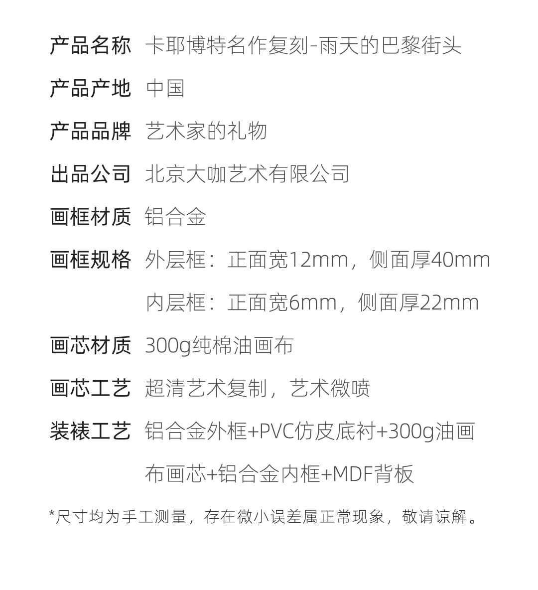 雨天的巴黎街头 博物馆级超清复刻版画 简约餐厅挂画客厅风景油画 简介