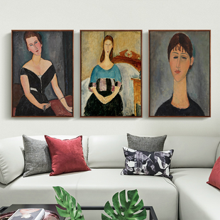 莫迪里阿尼-肖像系列 博物馆级复刻版画 客厅装饰画沙发背景油画