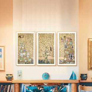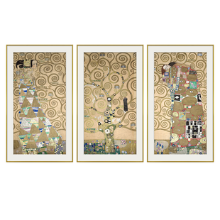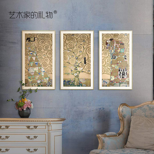 克里姆特-生命之树 欧式客厅沙发背景墙三联画玄关走道竖版装饰画